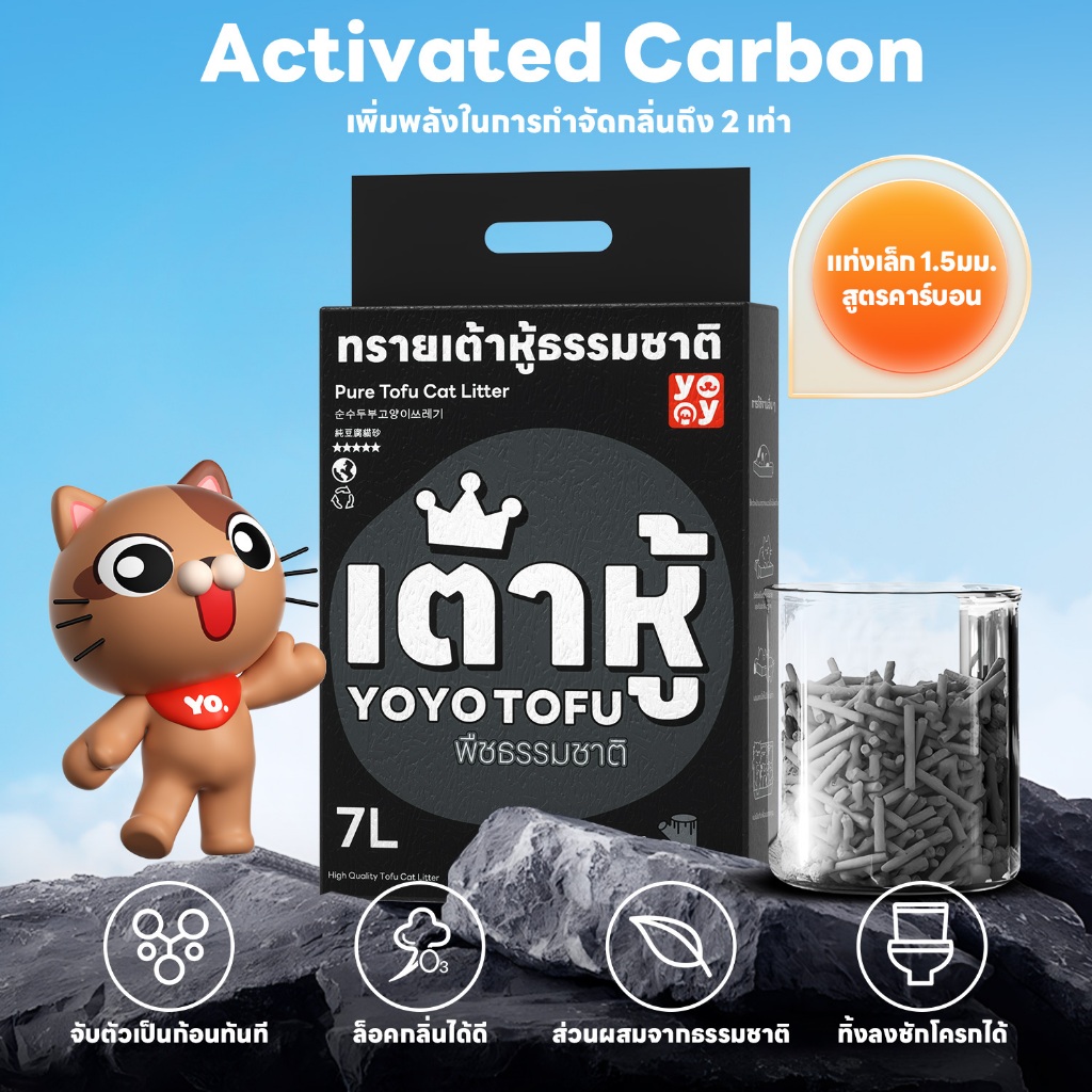 yoyopet : 1.5mm Tofu cat litter สูตร Activated Carbon ทรายแมวเต้าหู้คาร์บอน 7ลิตร แบบแท่ง 1.5มม