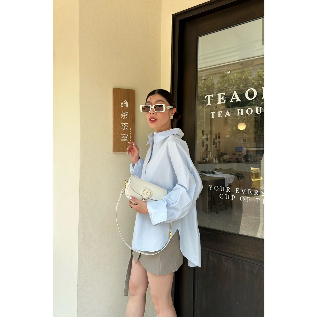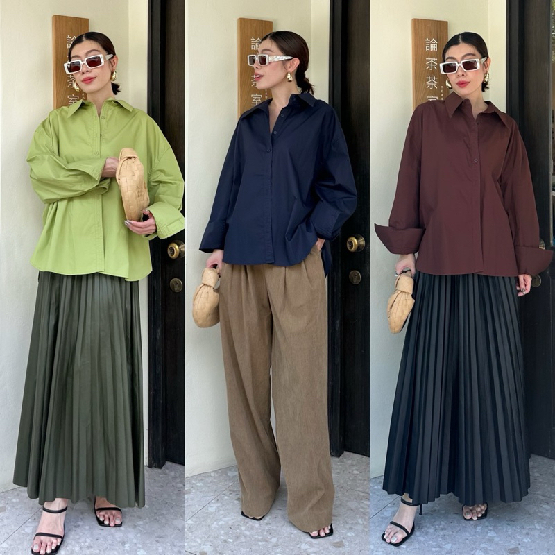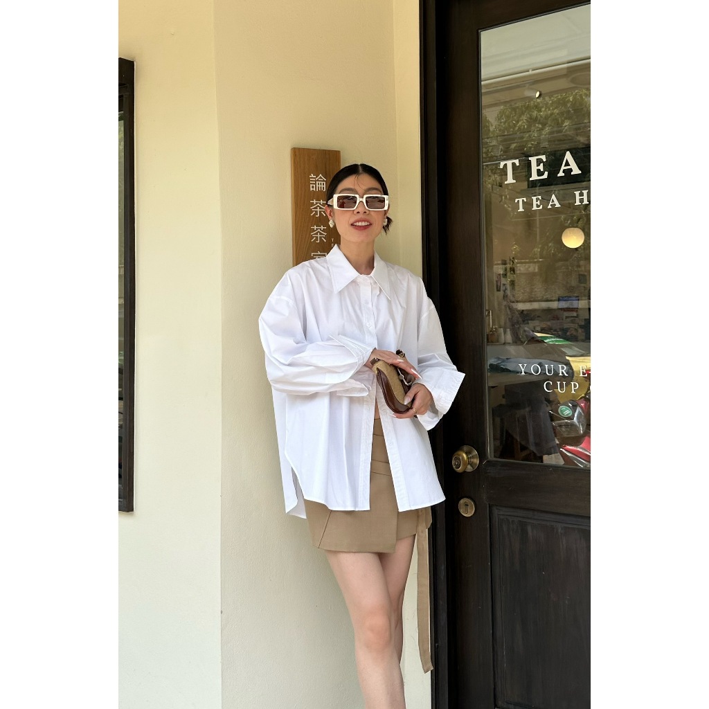 ส่งด่วน🔖StudioX2 #6787 เสื้อเชิ้ตทรงโอเวอร์ไซส์ ชายโค้ง หน้าสั้นหลังยาว เดินตะเข็บคู่ทั้งตัวคอกว้าง เนื้อผ้าเชิ้ตcotton