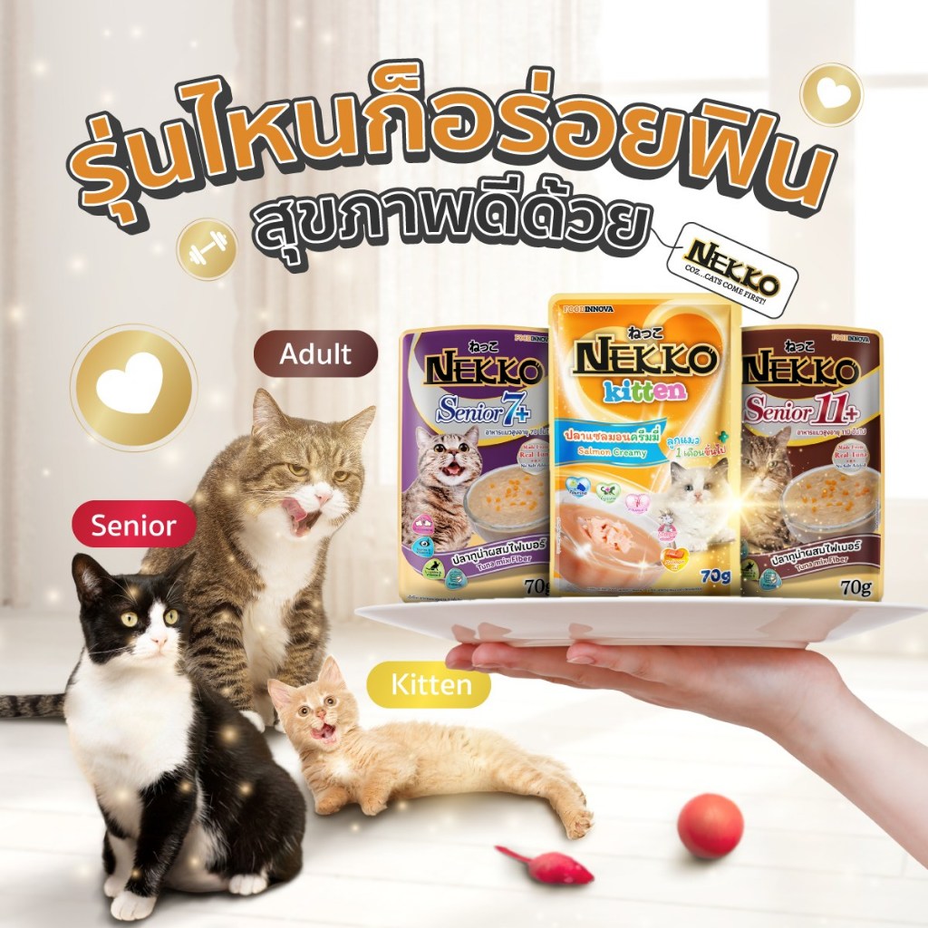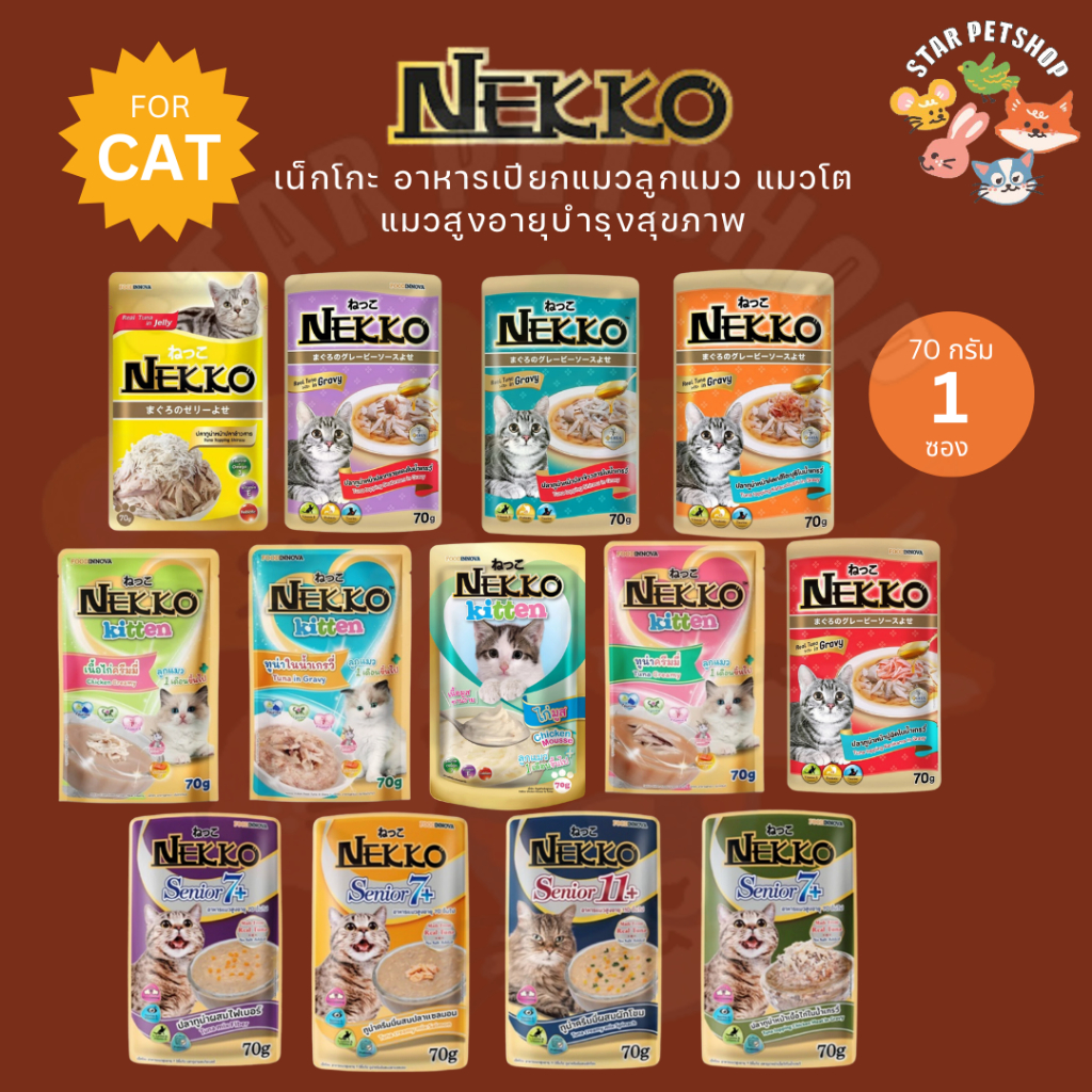 Nekko เน็กโกะ อาหารเปียกแมว แมวโต ลูกแมว Omega3 บำรุงขนและผิวหนัง 70g