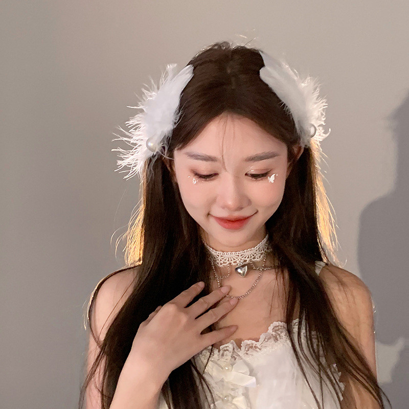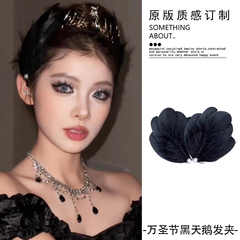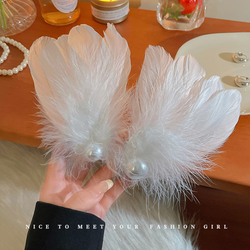 โจโจ้ โกโก้ 2ชิ้นฝรั่งเศสมุกขนนกกิ๊บสําหรับผู้หญิงสาวเจ้าสาวคลิปด้านข้างกิ๊บเรียบอุปกรณ์ผม