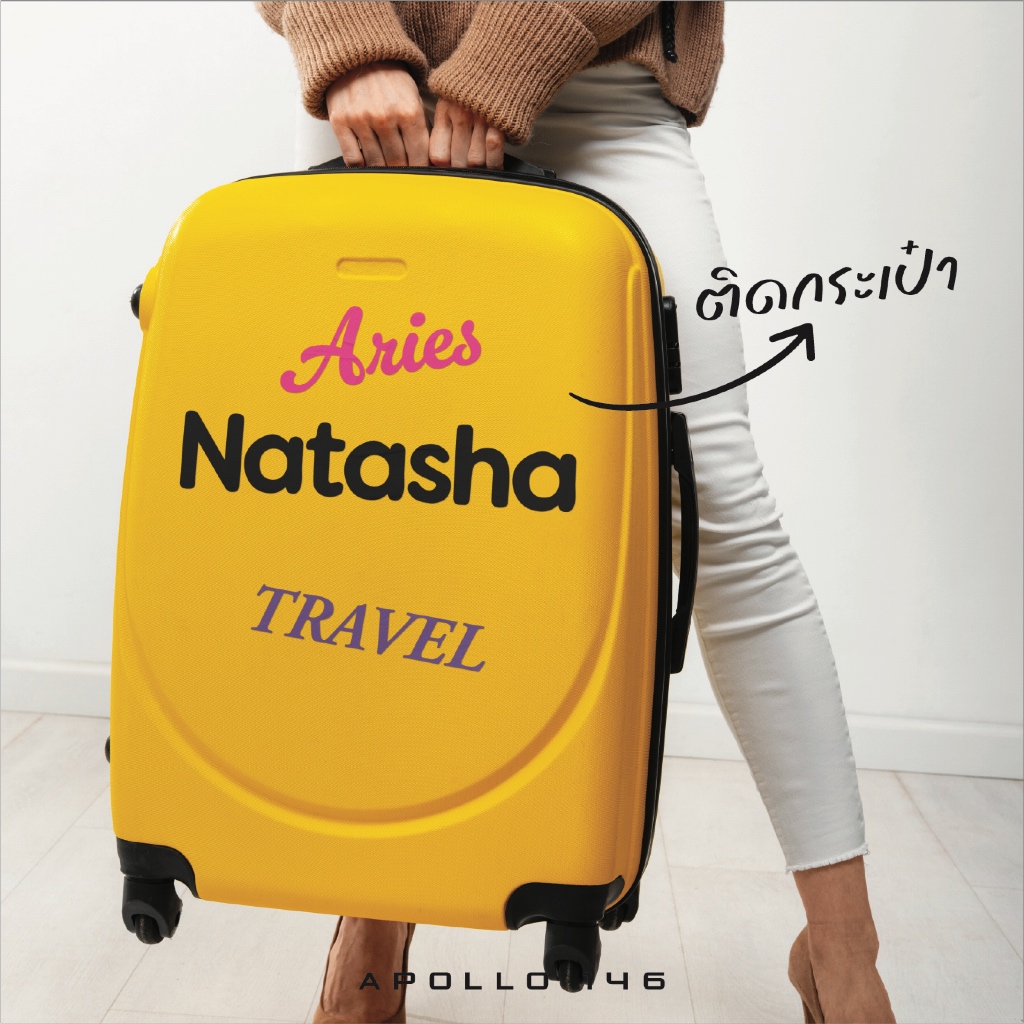 สติกเกอร์ระบุชื่อหรือข้อความได้ ติดกระเป๋าเดินทาง รถ ติดได้ทุกที่ ราคาต่อ 1 ข้อความ เลือกตัวอักษรได้