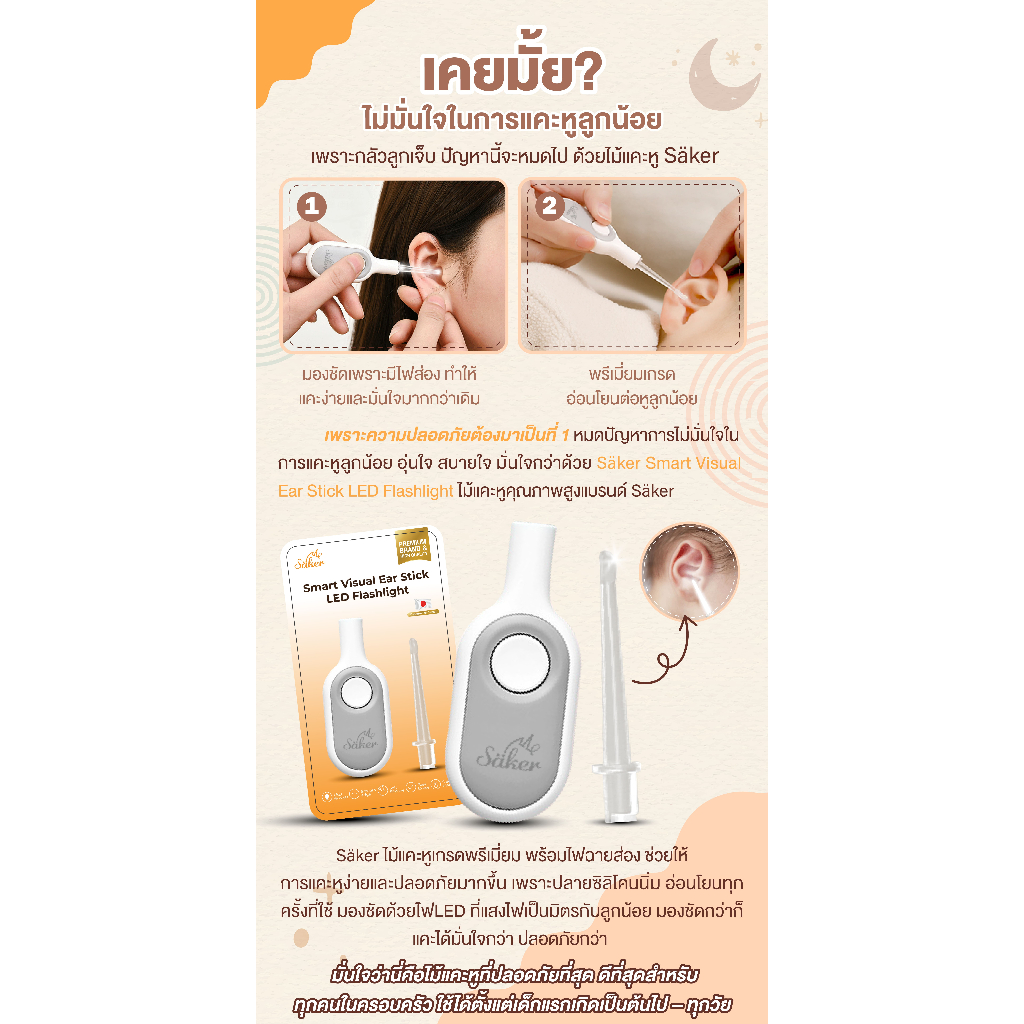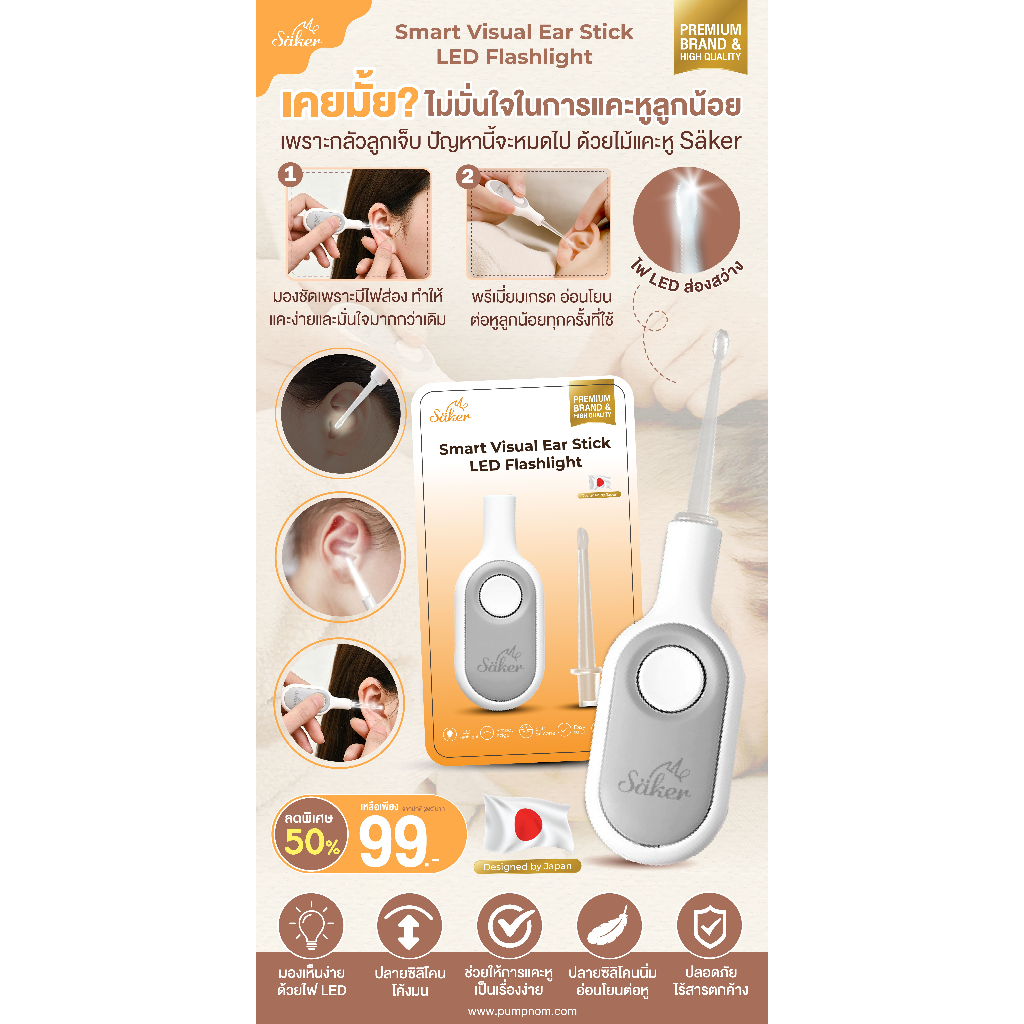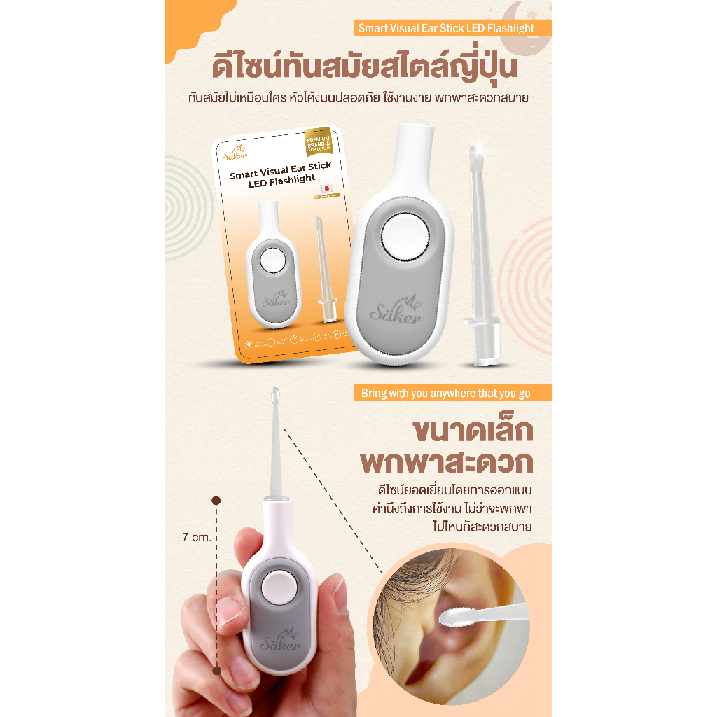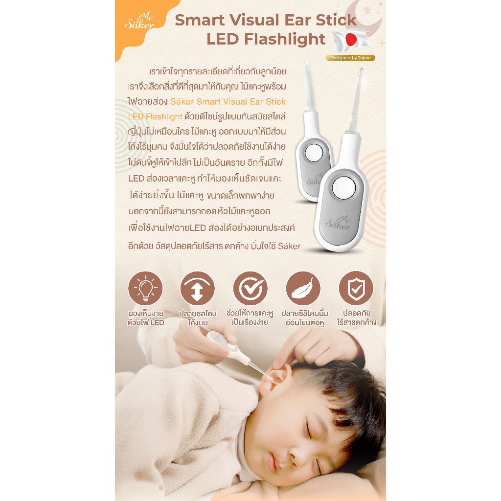 (สินค้าจำเป็นขายดีมากๆ) Saker ไม้แคะหูซิลิโคน+ไฟLEDส่องสว่างในตัว นิ่มนุ่มนวลอ่อนโยน ปลายนิ่มซิลิโคน