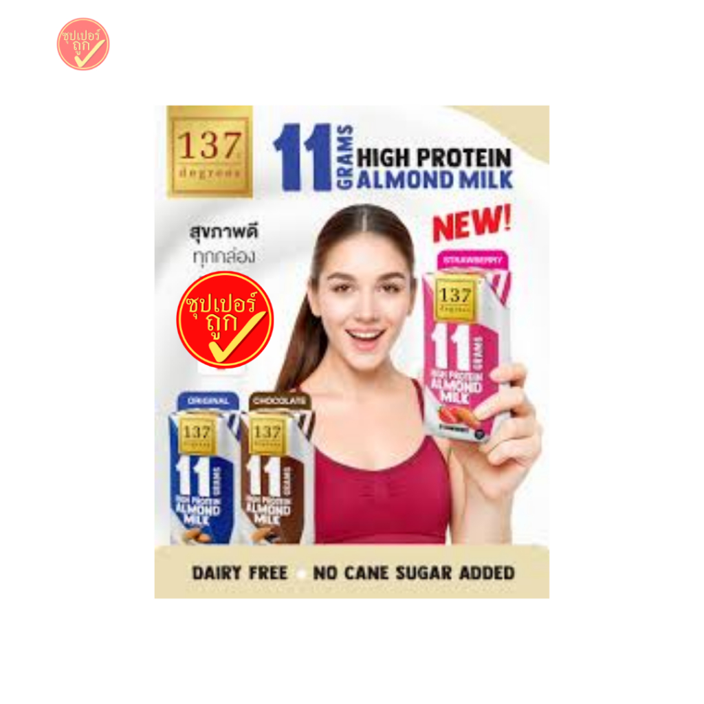 [ยกลัง36กล่อง] 137 degrees นมอัลมอนด์ผสมน้ำนมถั่วเหลือง โปรตีนสูง 180มล x 36กล่อง