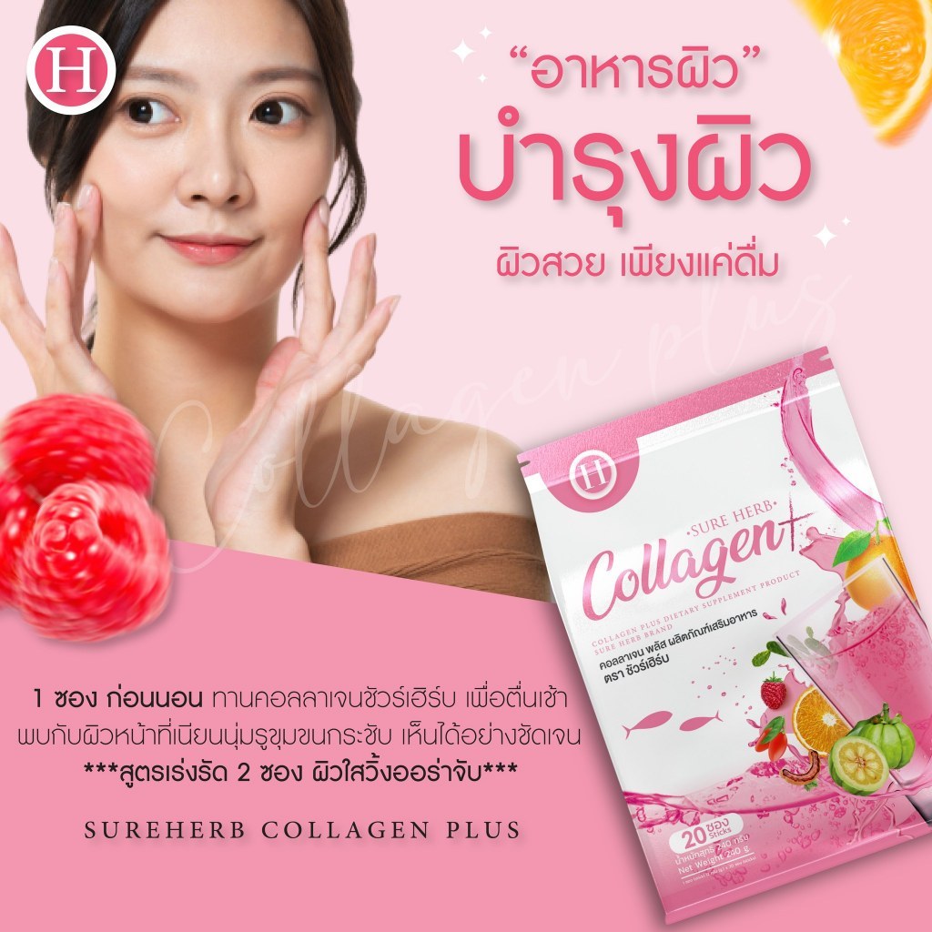 Collagen Sure herb คอลลาเจนพลัส คอลลาเจนรสผลไม้รวม ชัวร์เฮิร์บ ของเเท้บริษัท !! (1 ห่อ 20 ซอง)