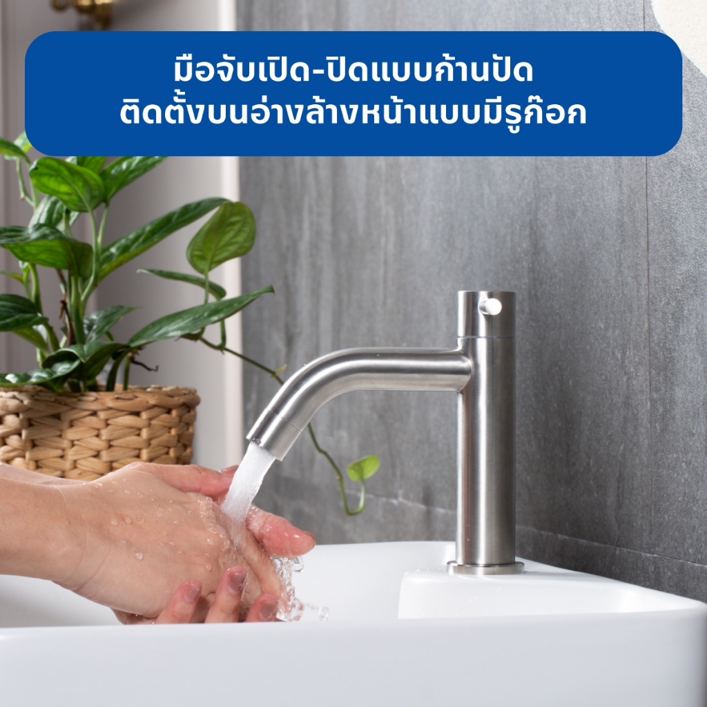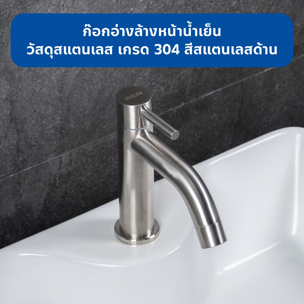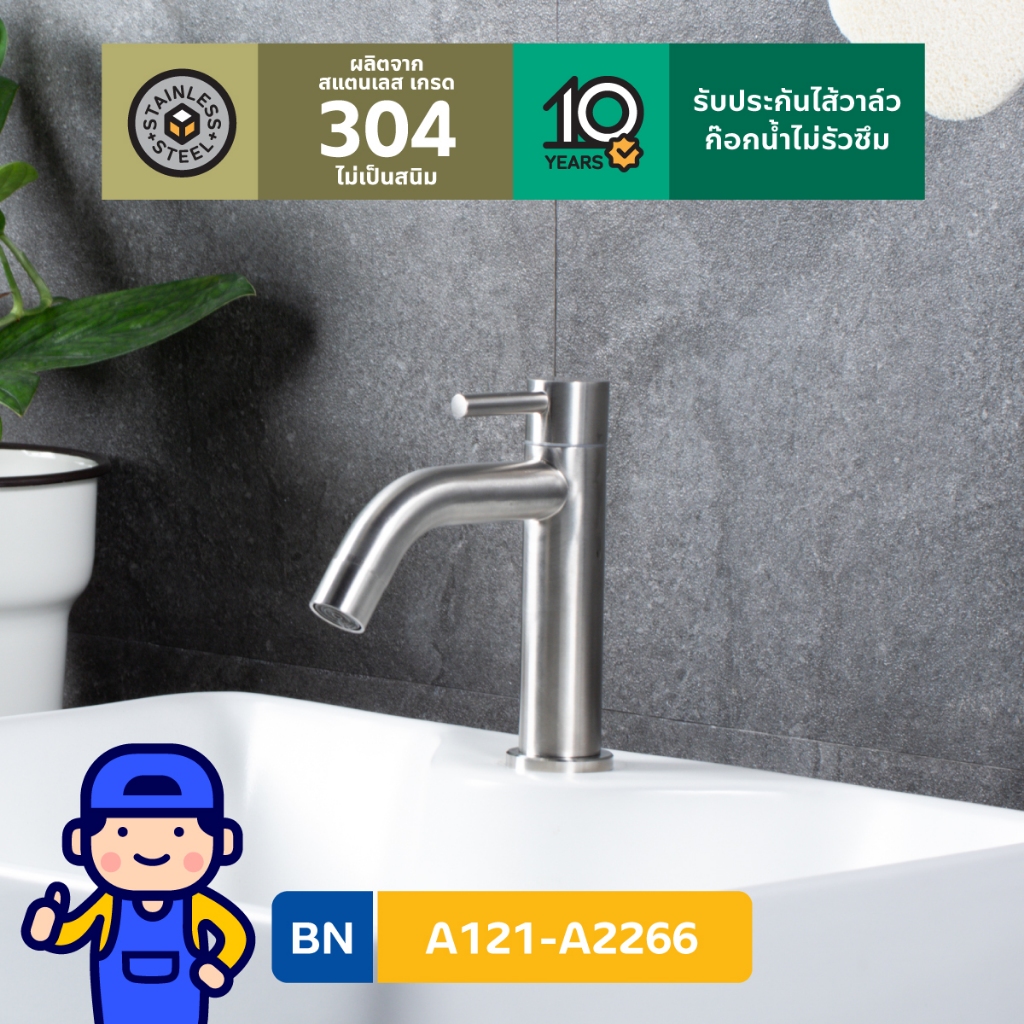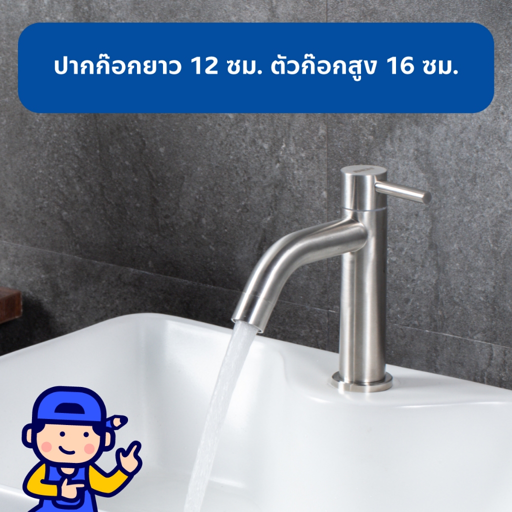 ก๊อกอ่างล้างหน้าน้ำเย็น สแตนเลส304 สูง16 cm ใช้กับอ่างล้างหน้าแบบมีรูก๊อก ตัวล็อกทองเหลืองแข็งแรง รับประกันไส้วาล์ว 10ปี