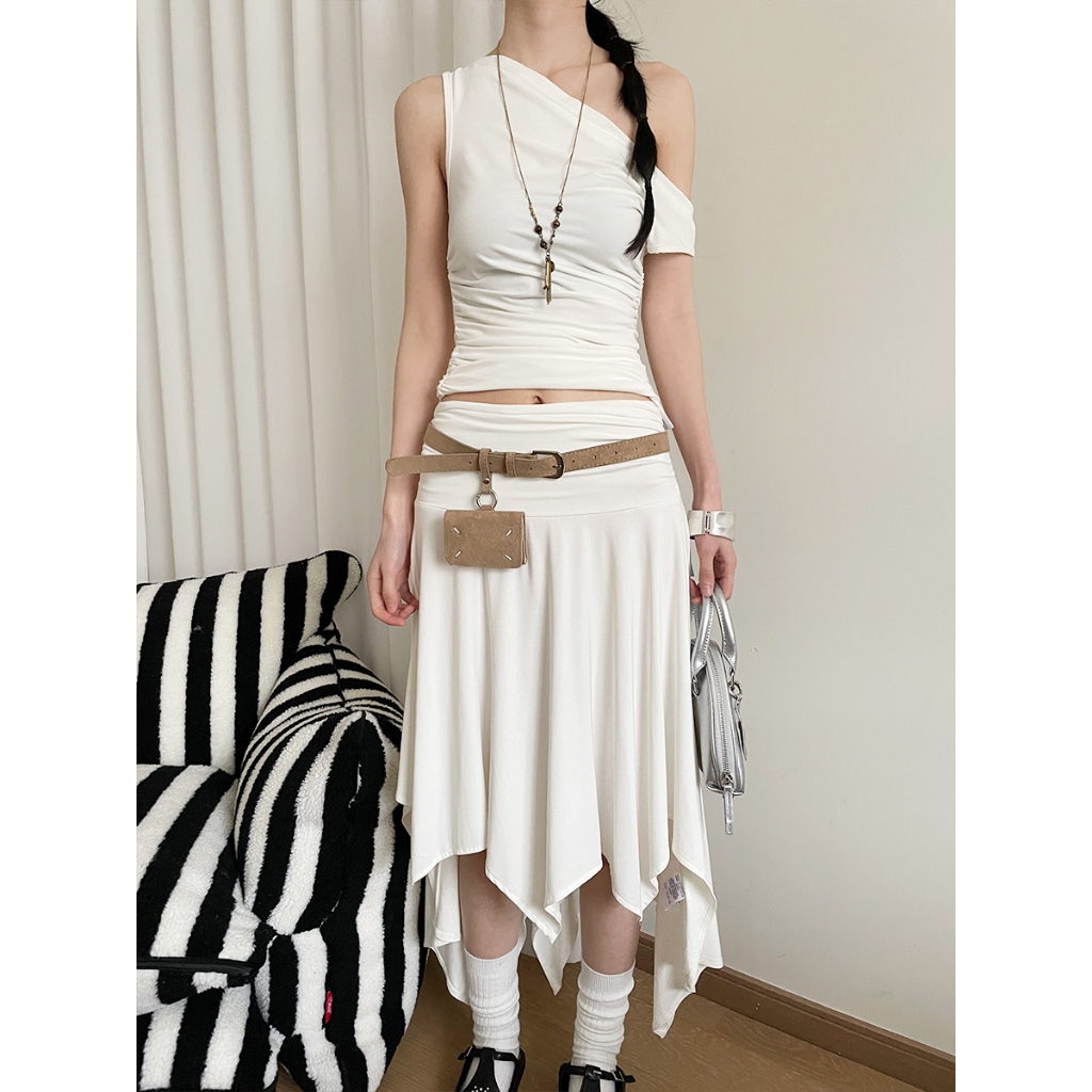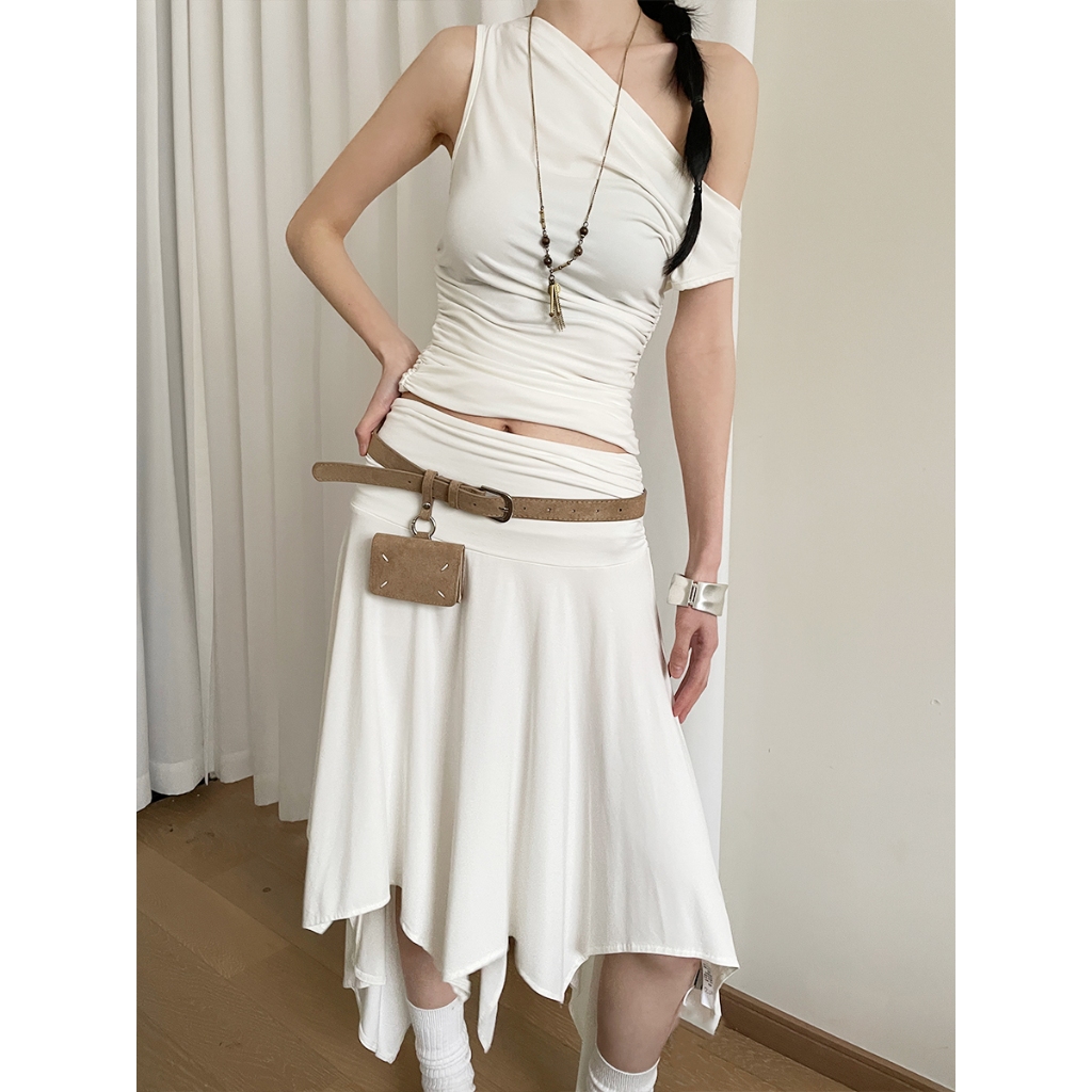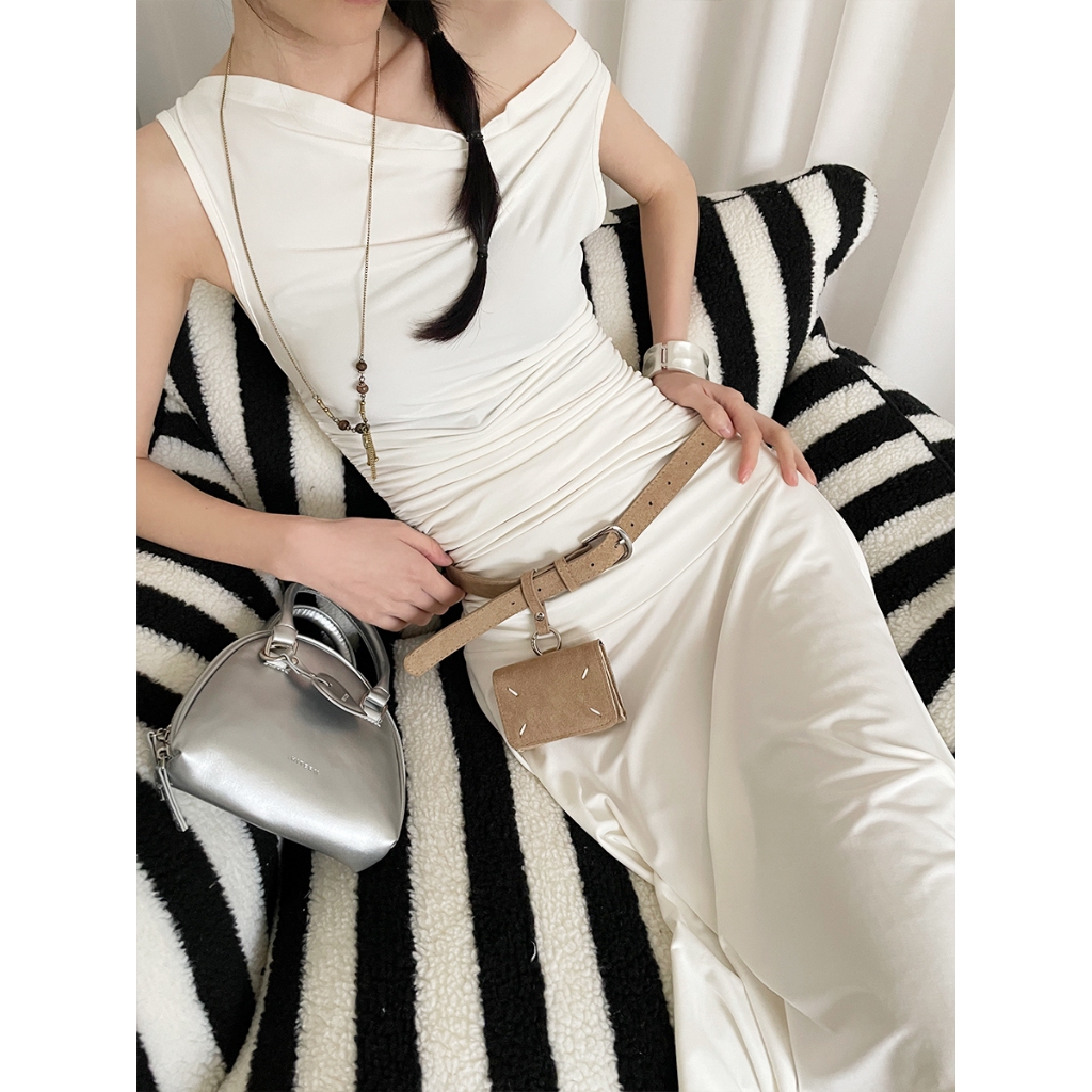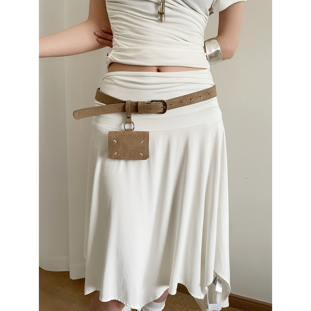เวอร์ชั่นเกาหลี High-End เข็มขัดสีกากีหญิงมินิเอวกระเป๋าตกแต่ง Niche Matte Design พร้อมชุดเข็มขัด
