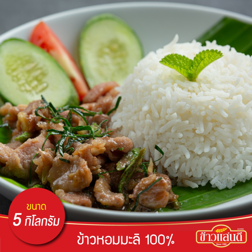 [ส่งฟรี] ข้าวแสนดี ข้าวหอมมะลิ 100% (ถุงชมพู) 5 กก.จำนวน 20 ถุง