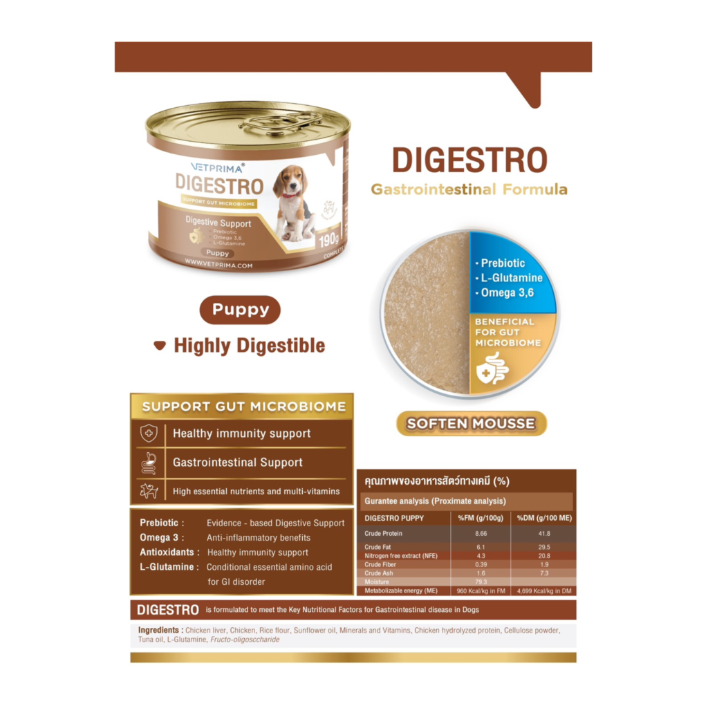 Vetprima Digestro for Puppy สูตรทางเดินอาหารสำหรับลูกสุนัข 190g.