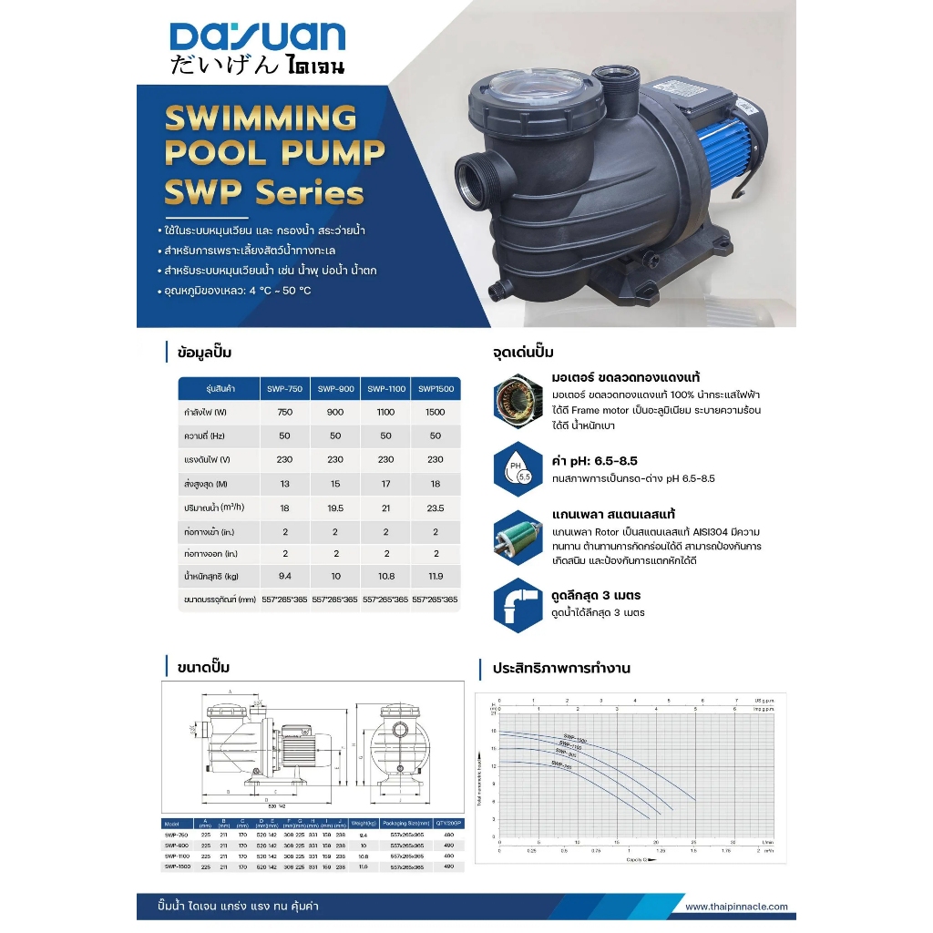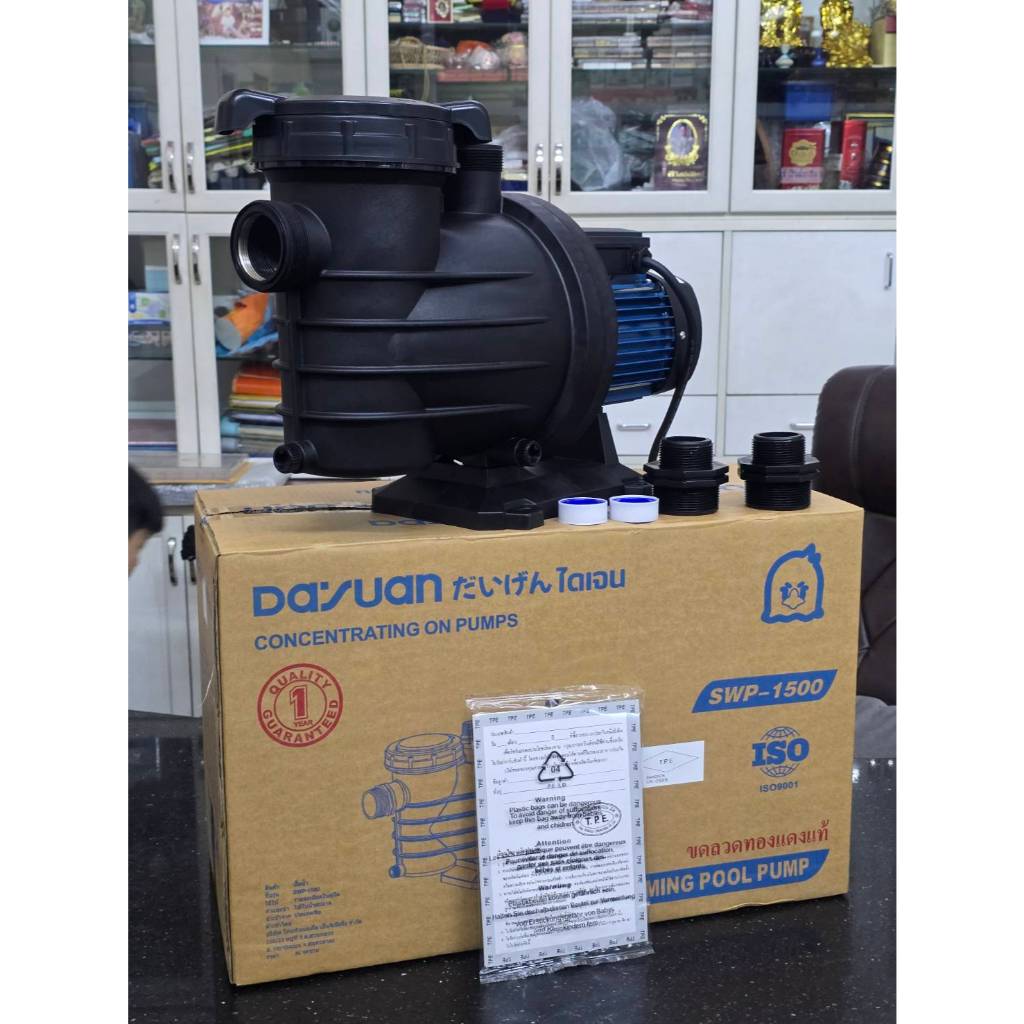 ปั้มสระว่ายน้ำ มีตัวกรองน้ำเข้า เกลียวใน 1.5นิ้ว กำลัง 750 - 1500วัตต์ ยี่ห้อ DAYUAN รุ่น SWP