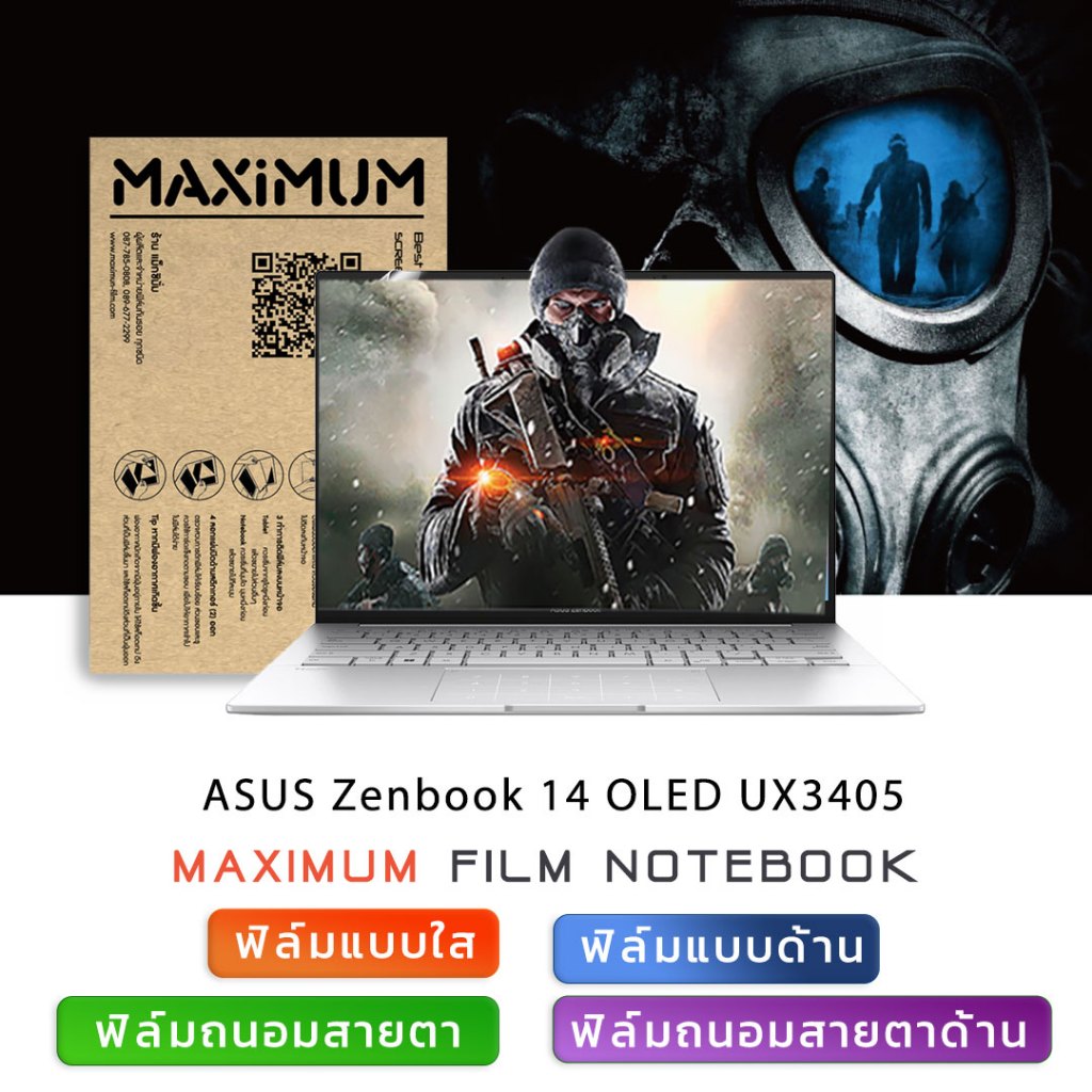 ฟิล์มกันรอย โน๊ตบุ๊ค ASUS Zenbook 14 OLED UX3405 2025 16:10 (ขนาดฟิล์ม 14 นิ้ว : 30.9 x 20.6 ซม.)