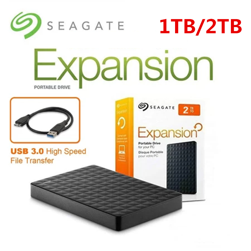 【จัดส่งในพื้นที่】Seagate 1TB/2TB External Hard Disk ฮาร์ดดิสพกพา USB3.0 2.5" ฮาร์ดดิสก์ความเร็วสูง รับประกัน 3 ปี