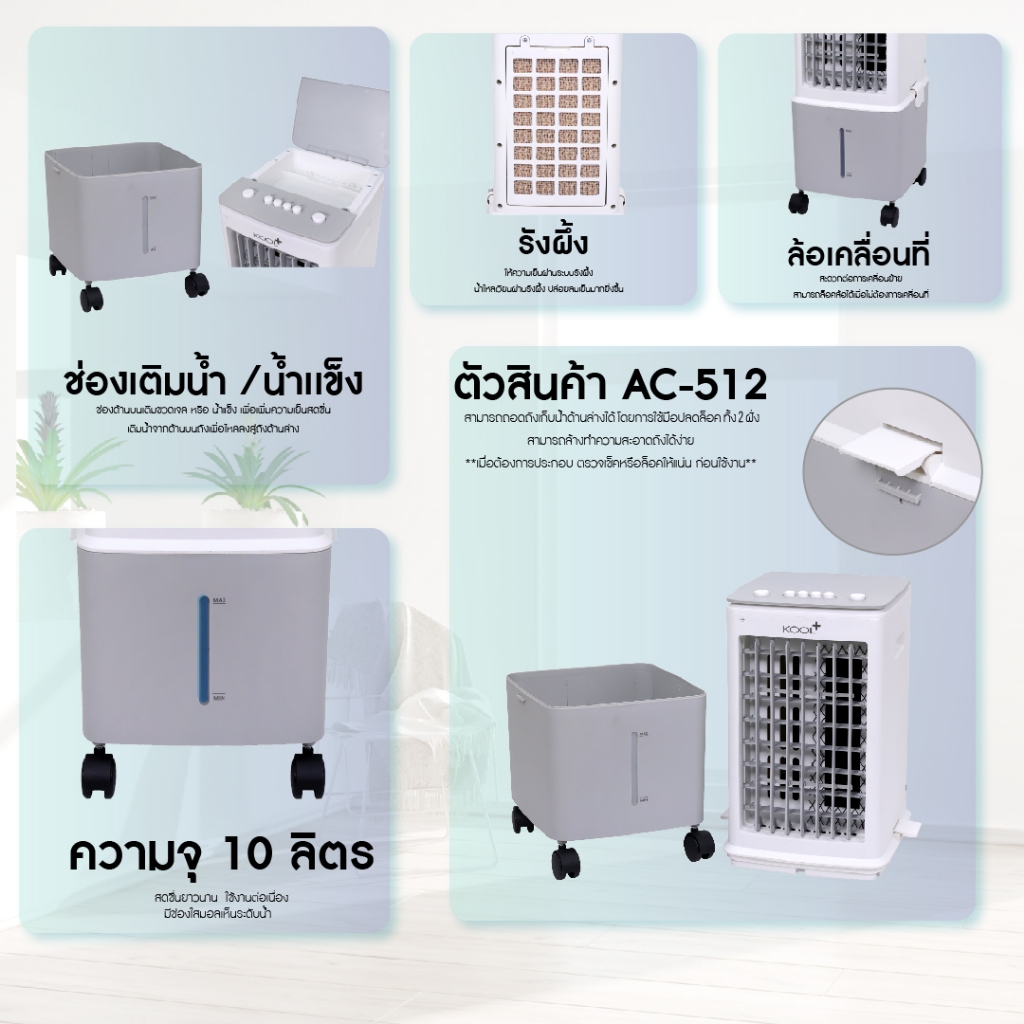 Kool Plus พัดลมไอเย็น รุ่น AV-512 ความจุ 10 ลิตร แถมฟรี cooling pack 2 ชิ้น