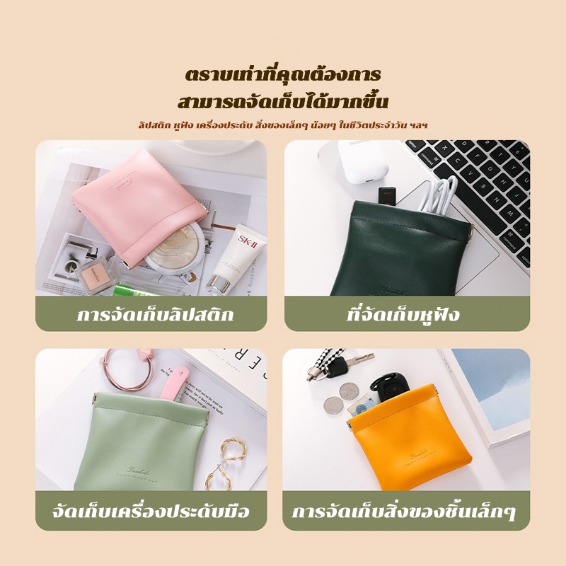 (1แถม1)กระเป๋าใส่เหรียญ PU กระเป๋าลิปสติก แบบพกพา เก็บเหรียญ สายเคเบิล USB กุญแจ หูฟัง ลิปสติก อเนกประสงค์ มี 8 สี