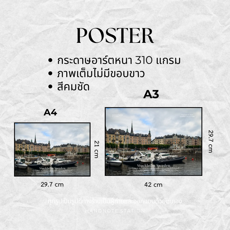 พร้อมส่งโปสเตอร์ภาพถ่ายประเทศสวีเดน ติดผนัง ตกแต่งห้อง A4 A3 - ลายซัมเมอร์คอลเลคชั่น / Poster A3 A4 Handnote Station