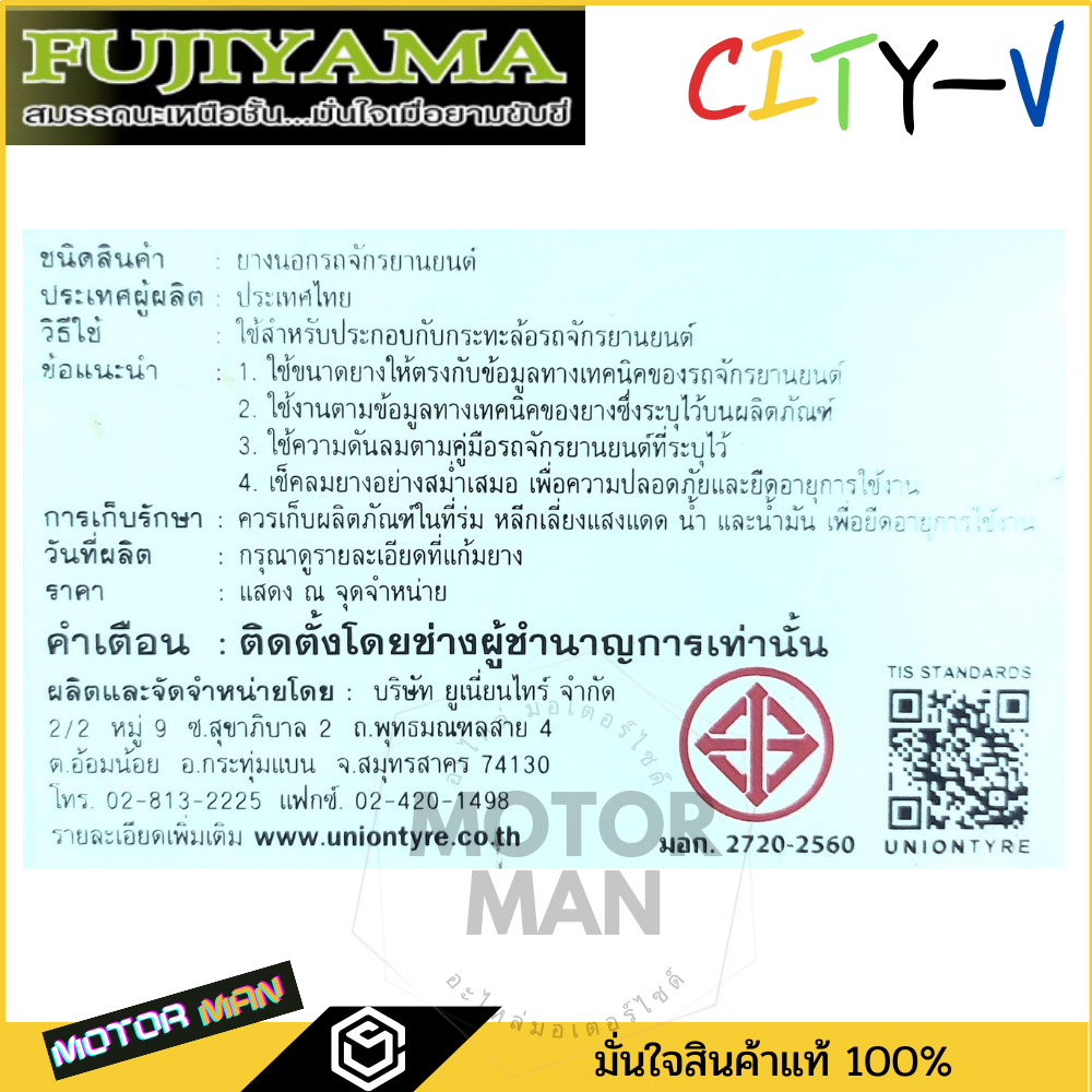 ยางนอกไม่ใช้ยางใน FUJIYAMA ลาย CITY-V เบอร์ 110/70 -13 130/70 -13 สำหรับ NMAX 155