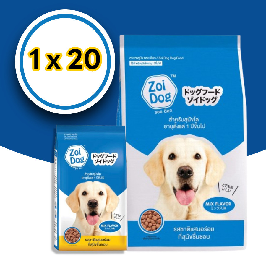 Zoi Dog ซอยด๊อก อาหารสุนัขโต ทุกสายพันธุ์ ขนาด 20 kg และ 1kg x 20(ไม่ได้ห่อบับเบิ้ล อาจมีความเสี่ยงจากขนส่ง)