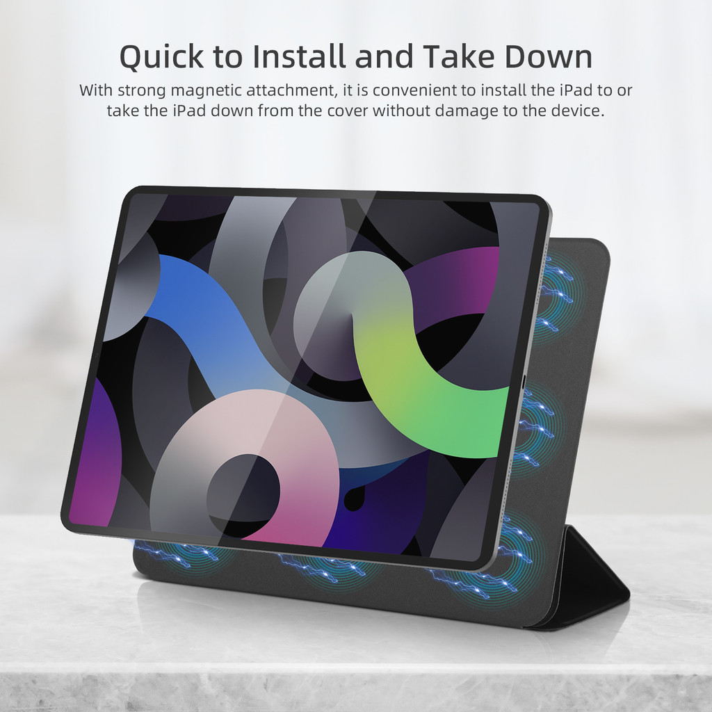 GOOJODOQ ยืนปก iPad รูป Y ช่องปากกาซ่อน แนบแม่เหล็ก 4 โหมดพับ นอนและตื่นอัตโนมัติ