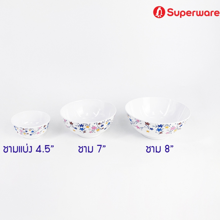 Srithai Superware จาน ชาม ถ้วย เมลามีน สำหรับใช้ ใส่อาหาร ลาย ดอกไม้ - Pink Ku ( พริ้ง-คุ)