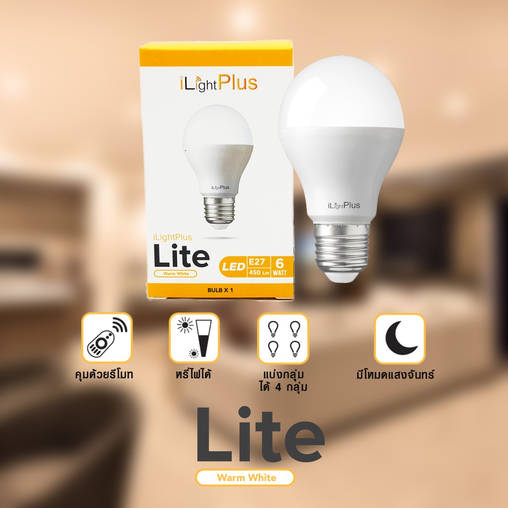 [ส่งไว ใช้นาน มอก.] iLight Plus หลอดไฟ LED รุ่น Lite Warm (6W) 1 หลอด แสงสีเหลืองวอร์มไวท์ - หลอดเดี่ยว ไม่มีรีโมท
