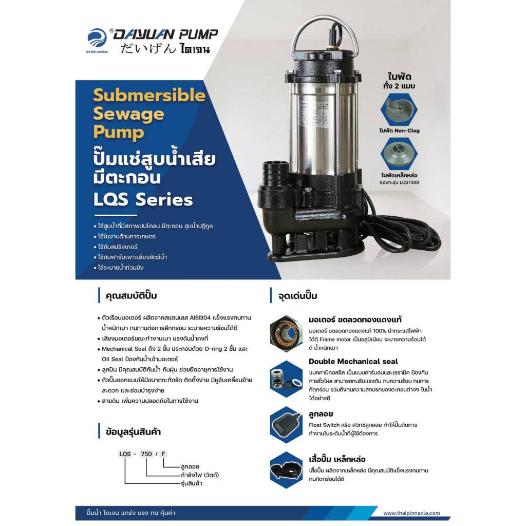 DAYUAN รุ่น LQS ปั๊มจุ่มน้ำเสีย ปั๊มไดโว่ ปั๊มซับเมิร์ส ปั๊มไดเจน