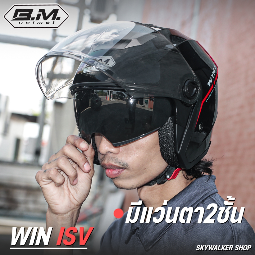 หมวกกันน็อค B.M. รุ่น WIN ISV /1ISV แว่นตา2ชั้น มีทับทิมสะท้อนแสง ราคาเบาๆ ขนาดฟรีไซส์รอบหัว 57-59cm.