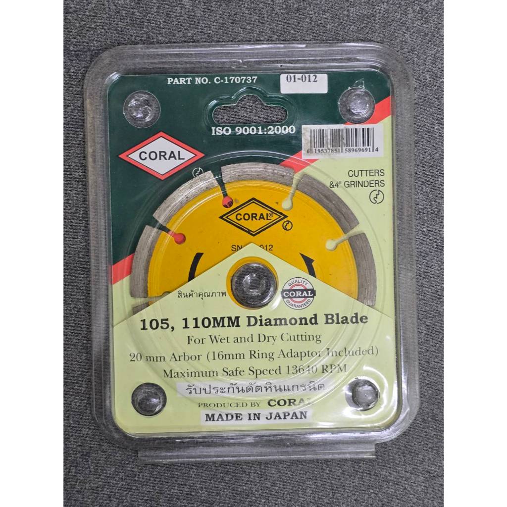 CORAL ใบตัดเพชร ตัดปูน ตัดกระเบื้อง 4 นิ้ว (105 x 1.7 x 7 x 20mm.) รุ่น SN-01-012
