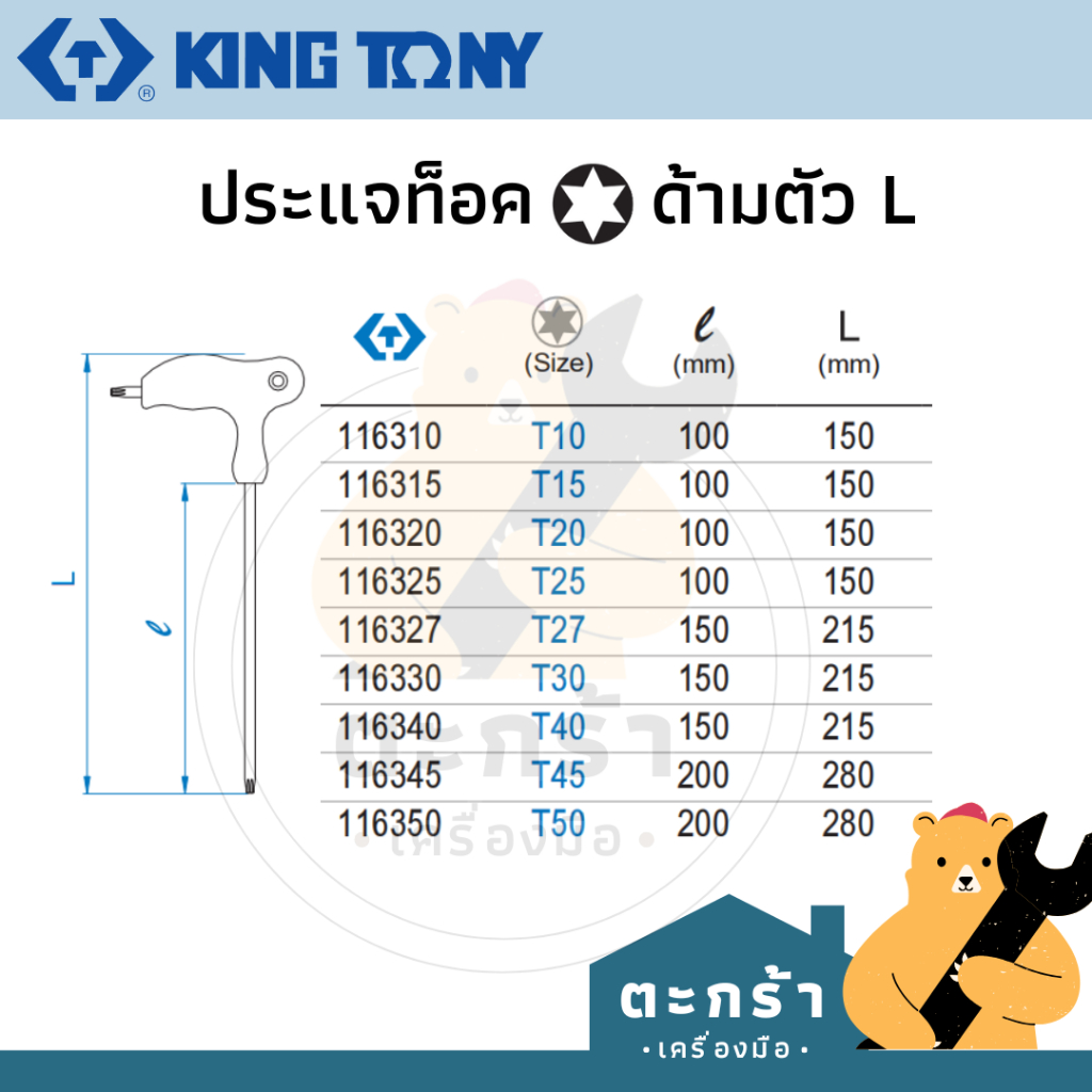 KINGTONY ประแจท็อค ประแจดาว ด้ามตัว L ขนาด T10-T50 รุ่น 1163 series