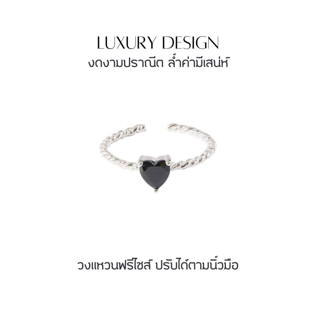 ESCOBAL แหวนเงินแท้ Vintage Love แหวนเงิน แหวนเพชรแท้ แหวนพลอยสีดำนำโชค ดีไซน์สวย วาเลนไทน์