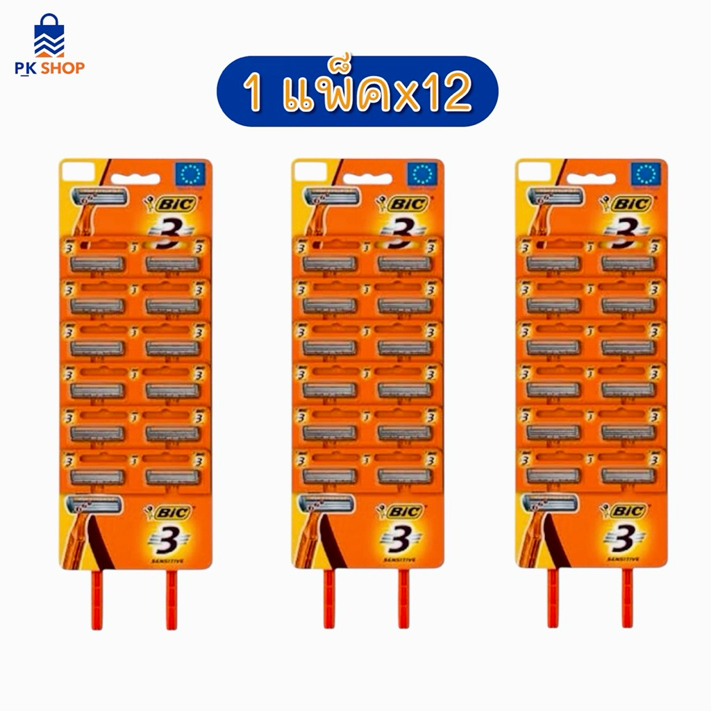 บิค มีดโกน 3 ใบมีด แผง 12 ด้าม Bic Shaver 3 Blades Pack x 12 pcs
