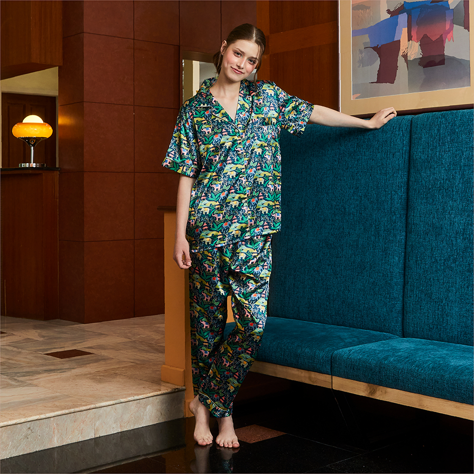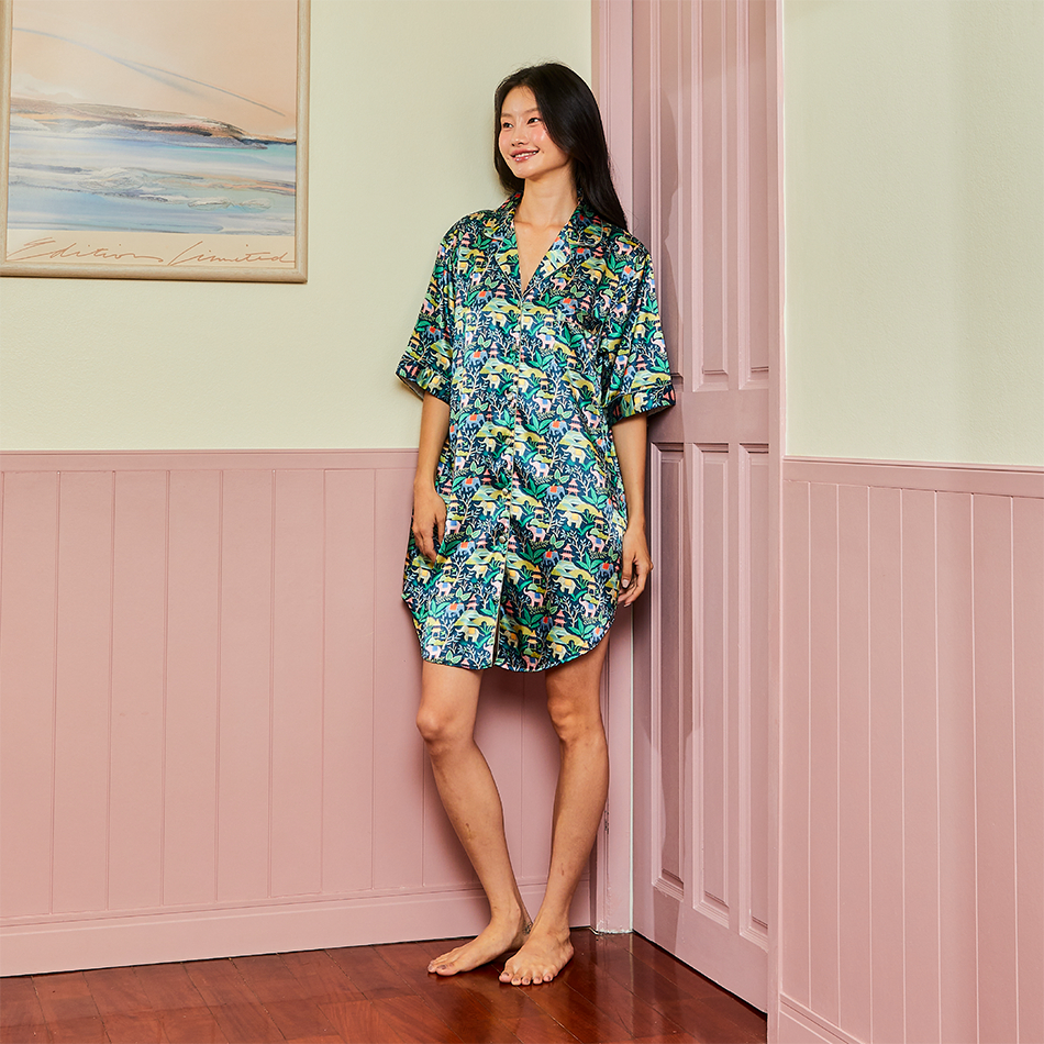 ชุดนอนแม่ลูก Vana ลาย Elephant Pavilion ผ้าซาติน ผ้านิ่มใส่บาย ไม่ร้อน ใส่คู่ก็น่ารัก | Collection The gathering of joy