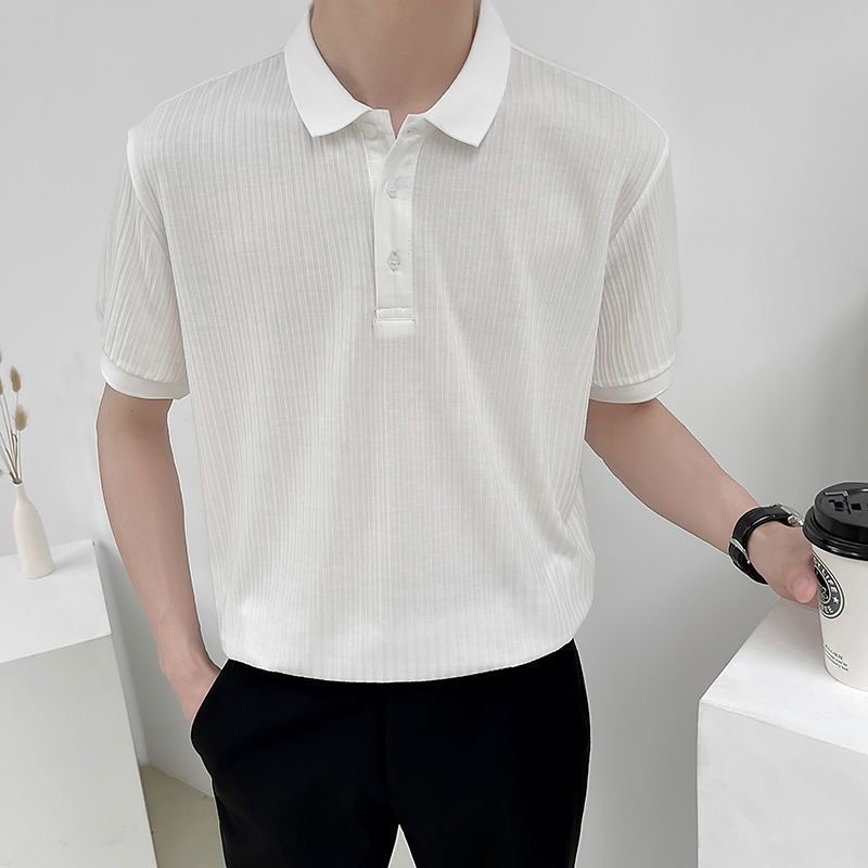 ACHSAWAKE เสื้อโปโลแฟชั่นของผู้ชายคนนี้ หลวมง่ายอินเทรนด์ และสบาย ๆ