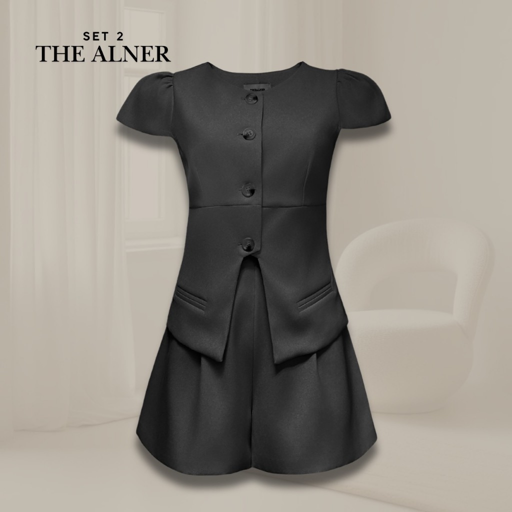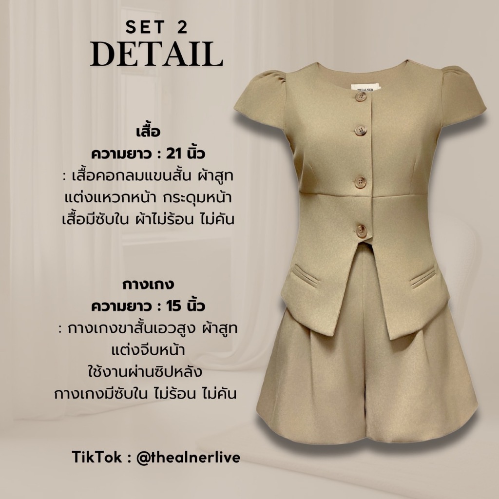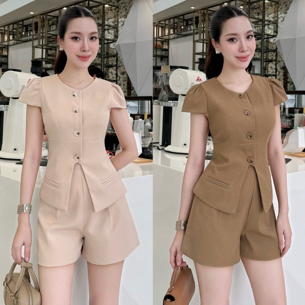 Thealner-AN145 (เซตเสื้อแขนสั้นแต่งกระดุมน้ากางเกงขาสั้น)