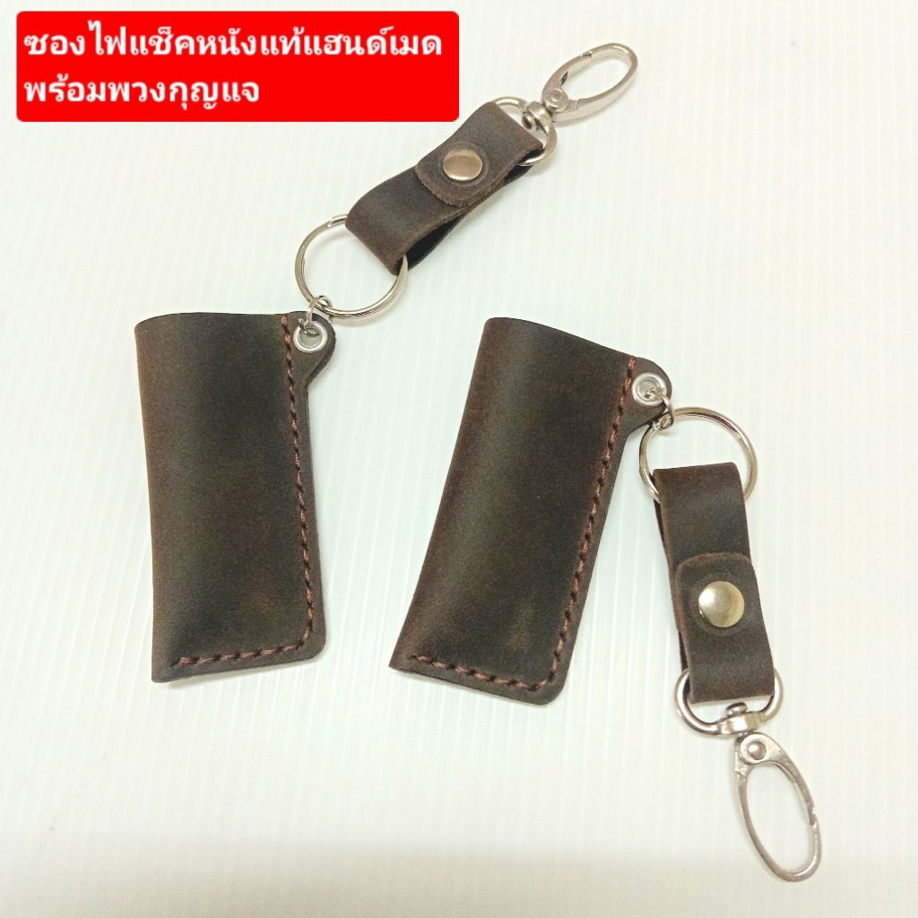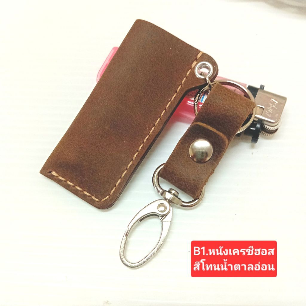 ซองไฟแช็คหนังแท้ พร้อมพวงกุญแจหนังแท้ (B1)ใส่ไฟแช็คธรรมดา handmade