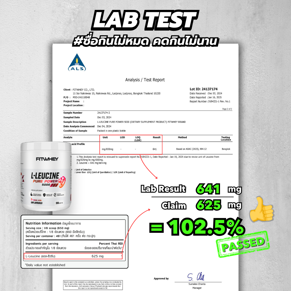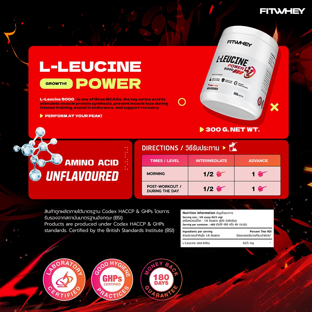 FITWHEY SUPPLEMENTS L-LEUCINE 5000 300 g ส่งเสริมกระบวนการสังเคราะห์โปรตีนในกล้ามเนื้อ