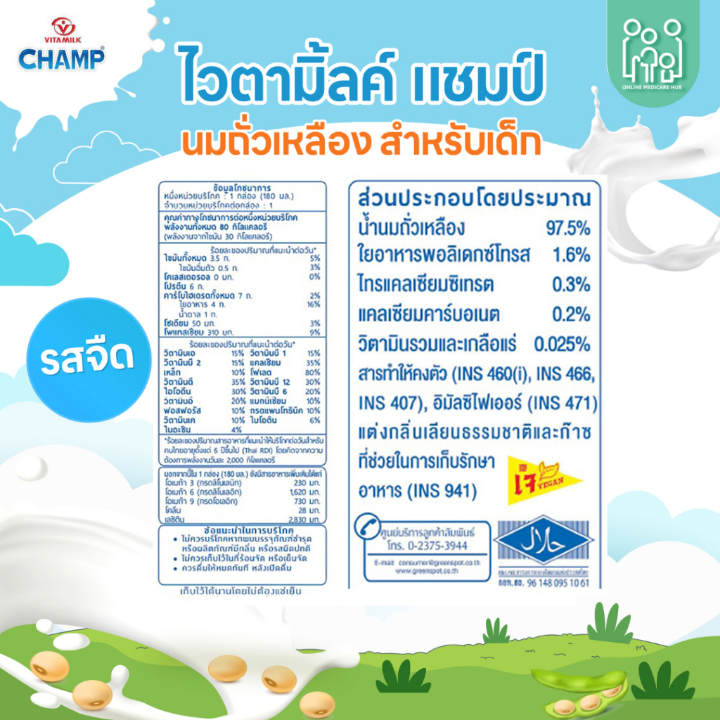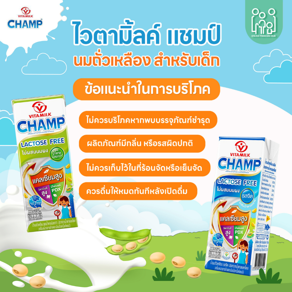 VITAMILK Champ Lactose-Free Soy Milk Unsweetened Flavor 180 ml. (แพ็ค 12 และ 48 กล่อง)