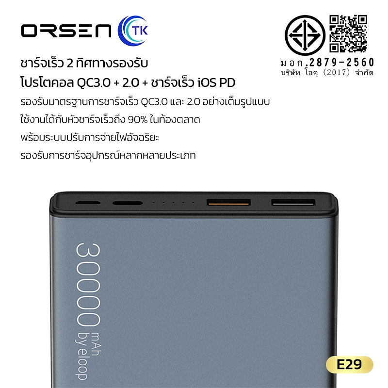 Orsen by Eloop E29/E29 Ultra แบตสำรอง 30000mAh QC3.0 PD 45W ชาร์จเร็ว PowerBank พาวเวอร์แบงค์ Type C