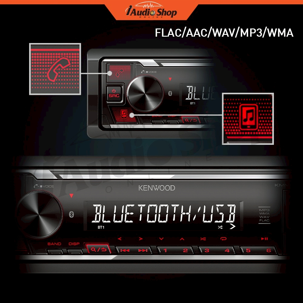 KENWOOD⚫แท้ วิทยุติดรถยนต์ วิทยุ 1 DIN วิทยุรถยนต์บลูทูธ USB MP3 1DIN KMM-BT208 iaudioshop
