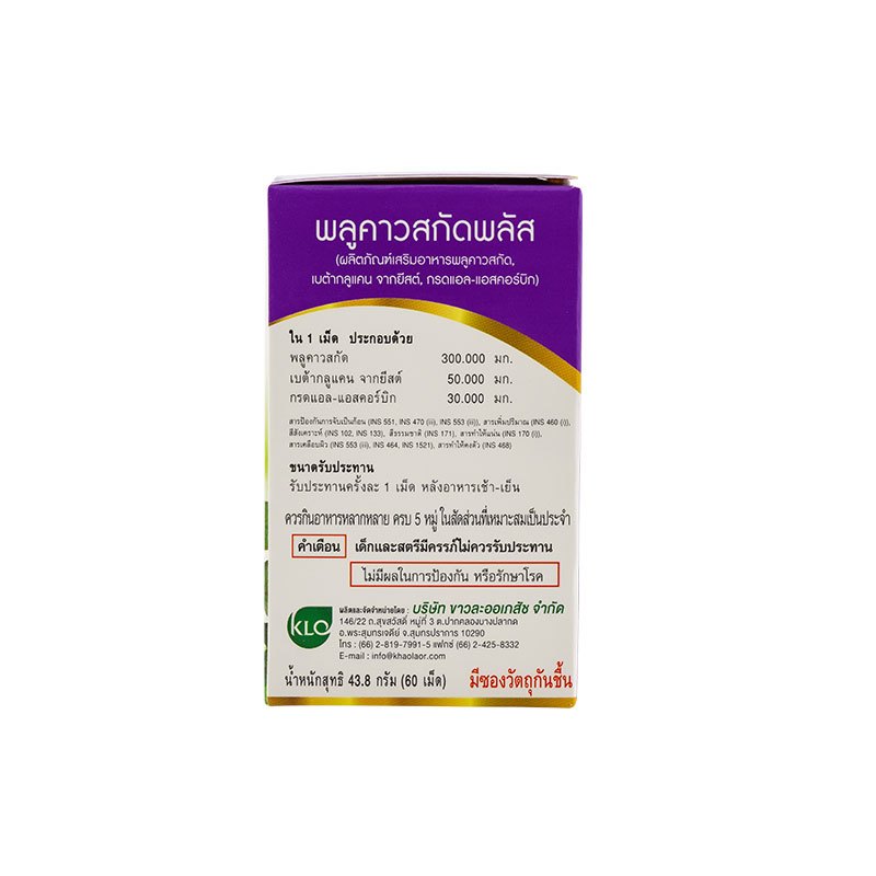(แพ็ค 3) Khaolaor ขาวละออ พลูคาวสกัด ผสม เบต้ากลูแคน และ วิตามินซี 60 เม็ด/กล่อง