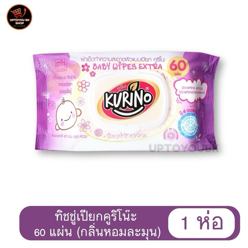 (คูริโนะ 1 ห่อ) Kurino BABY WIPE ทิชชู่เปียก ผ้าเช็ดทำความสะอาดผิวแบบเปียก 1 ห่อ 60 แผ่น คูริโน๊ะ 2สูตร ม่วง/ชมพู