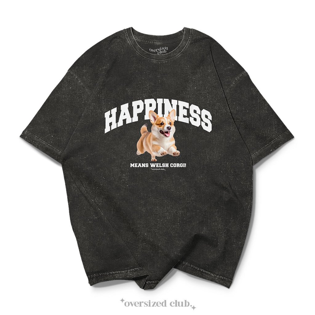 เสื้อฟอก ทรงโอเวอร์ไซส์ รวมลายหมา Happiness Dog Bleached Oversized Tee [Oversize Cotton 100% by Oversized Club]