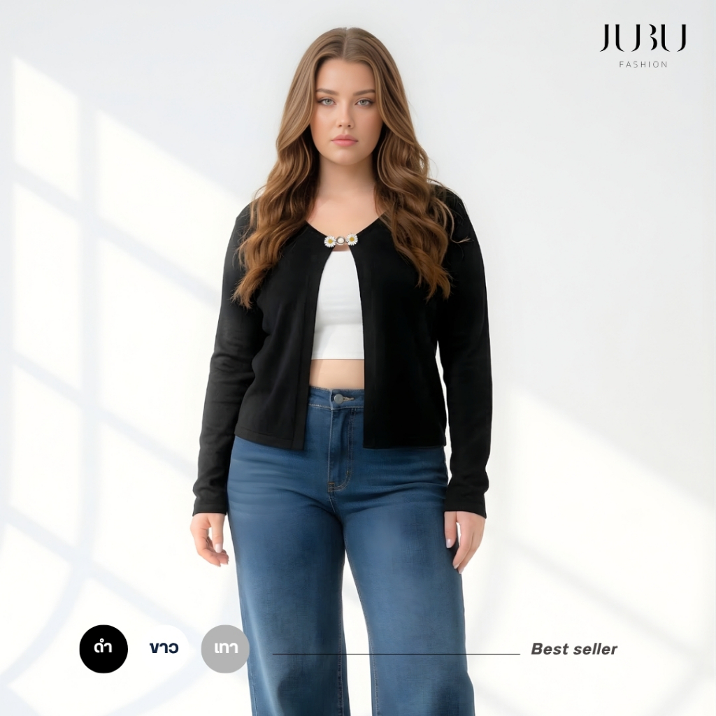 Olivia Top เสื้อคลุมแขนยาว เสื้อคลุมแฟชั่นสาวอวบ ผ้าร่อง ฟรีไซส์ อก35-46 นิ้ว พร้อมส่ง #565