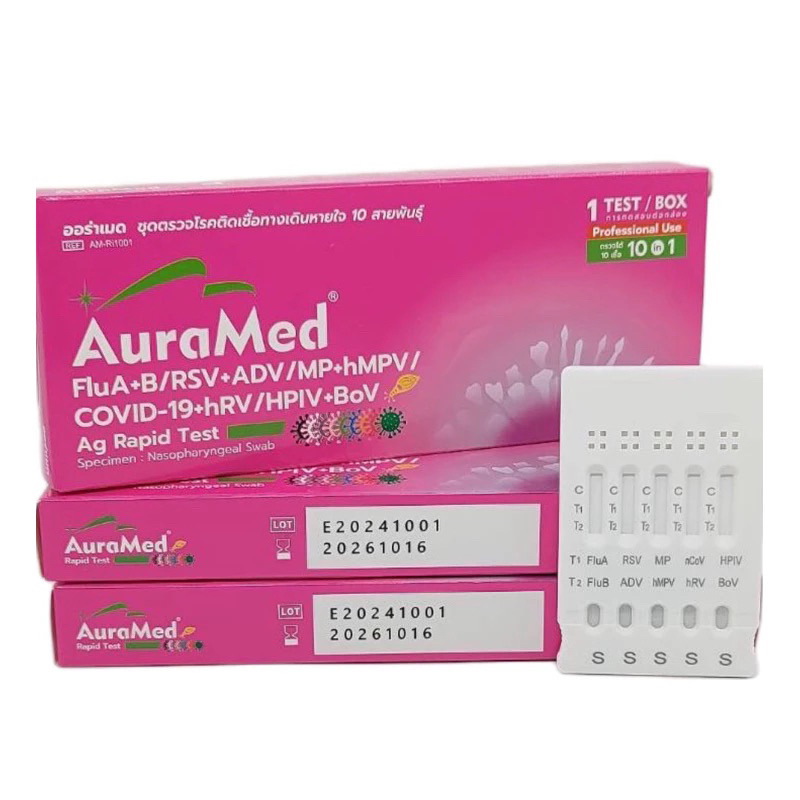 ดตรวจไข้หวัดใหญ่ hMPV hRV BoV RSV Flu A/B Covid Adeno MP Parainfluenza ไรโนไวรัส Auramed 10in1