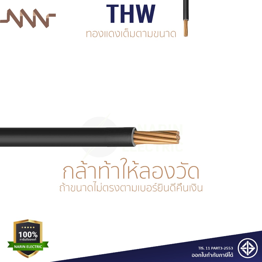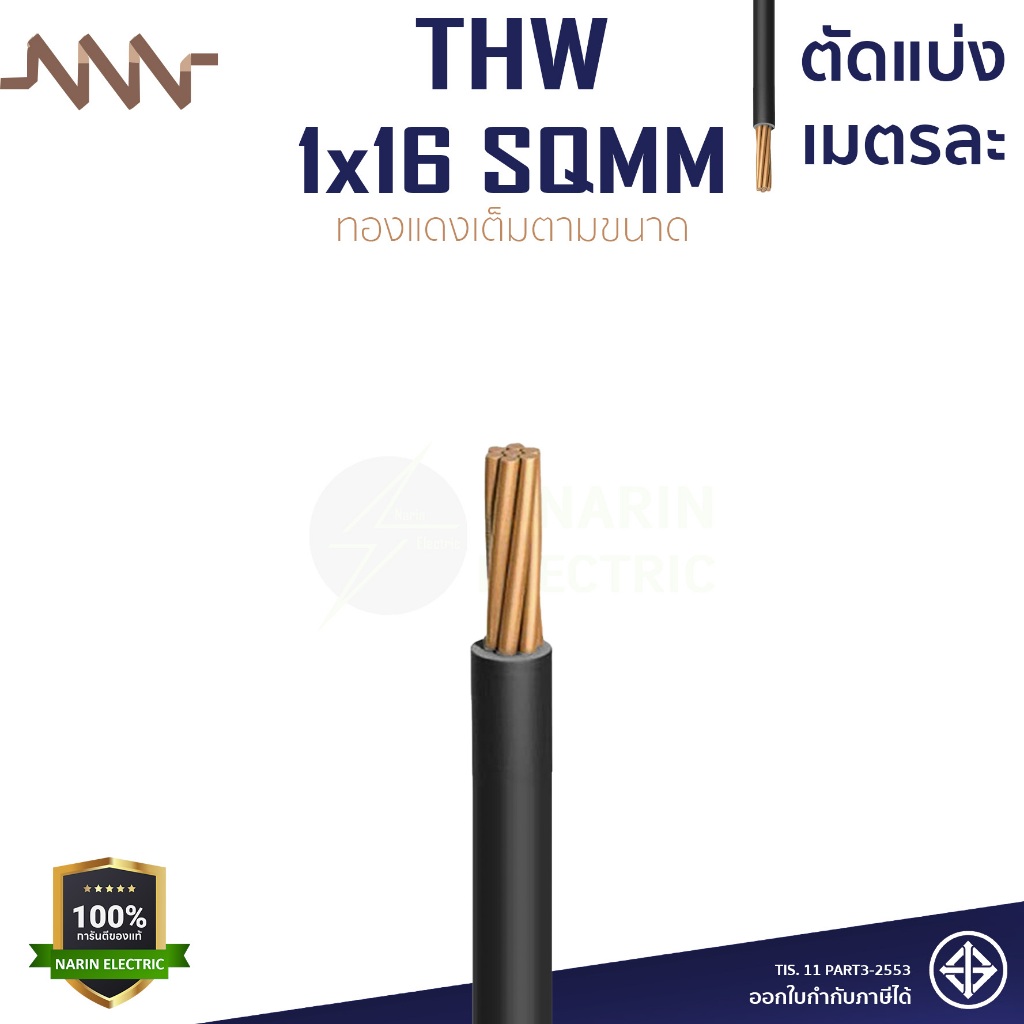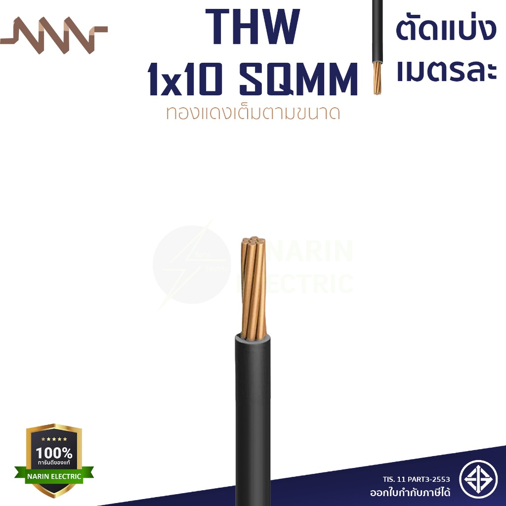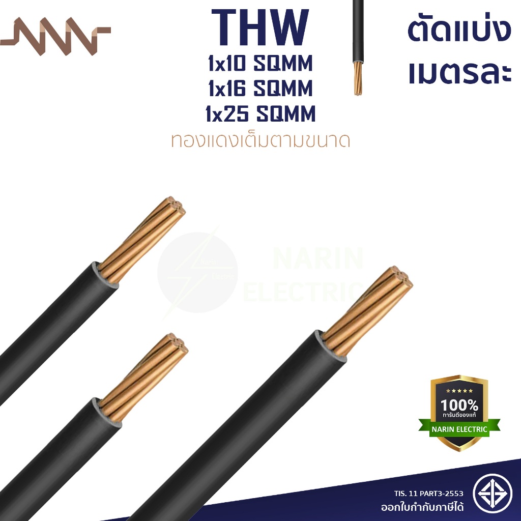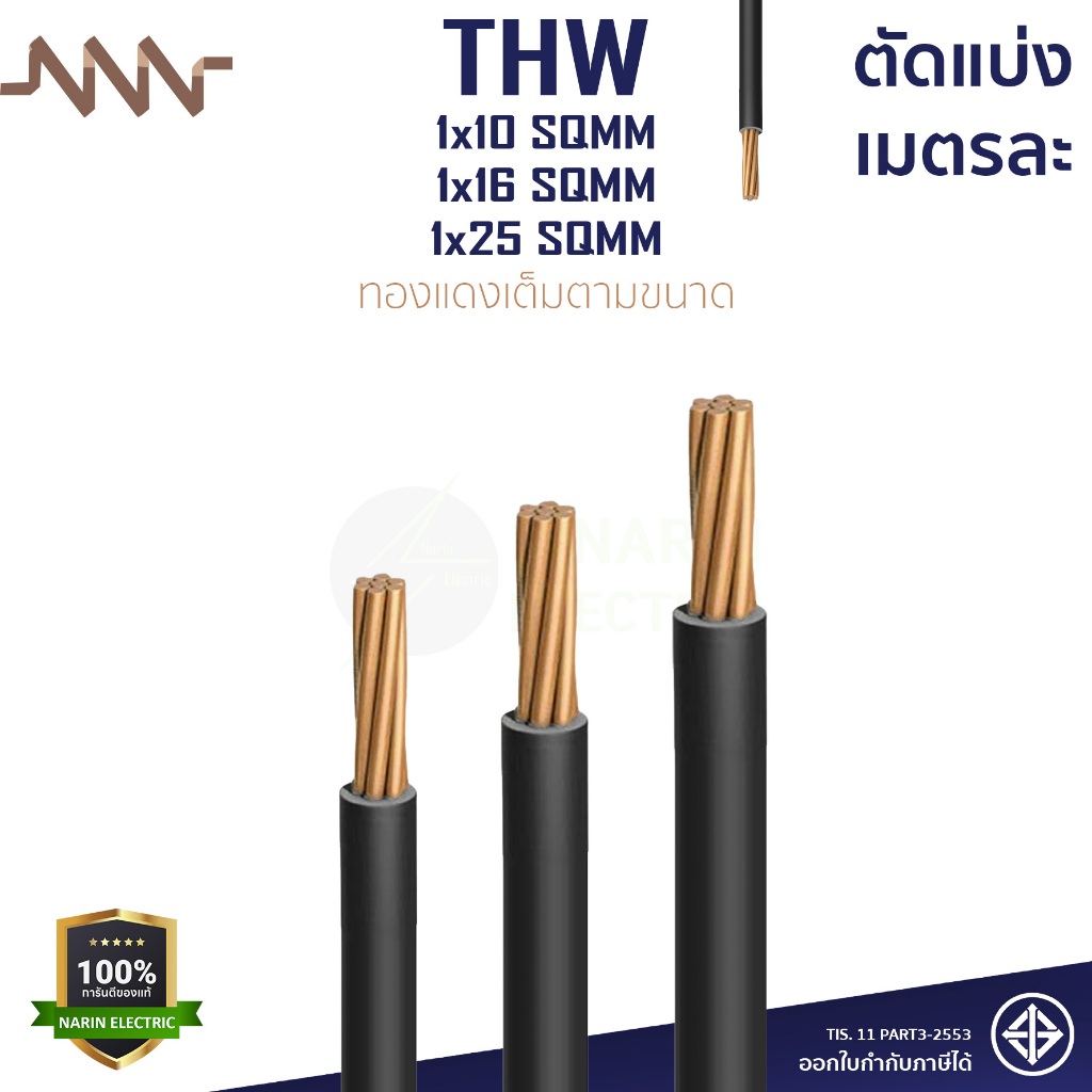 (เมตรละ) สายไฟทองแดง สายเมนทองแดง THW 1x10 THW 1x16 THW 1x25 sqmm สายไฟแข็ง NNN ทองแดงเต็มตามเบอร์