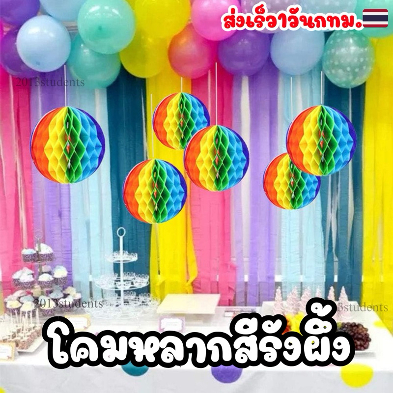 [ส่งเร็ว]💦โคมสงกรานต์หลากสี 🇹🇭❗️🌺💦 ขนาด 38ซม.,30ซม.,และ25ซม. โคมรังผึ้งหลากสี โคมลูกโลกสงกรานต์