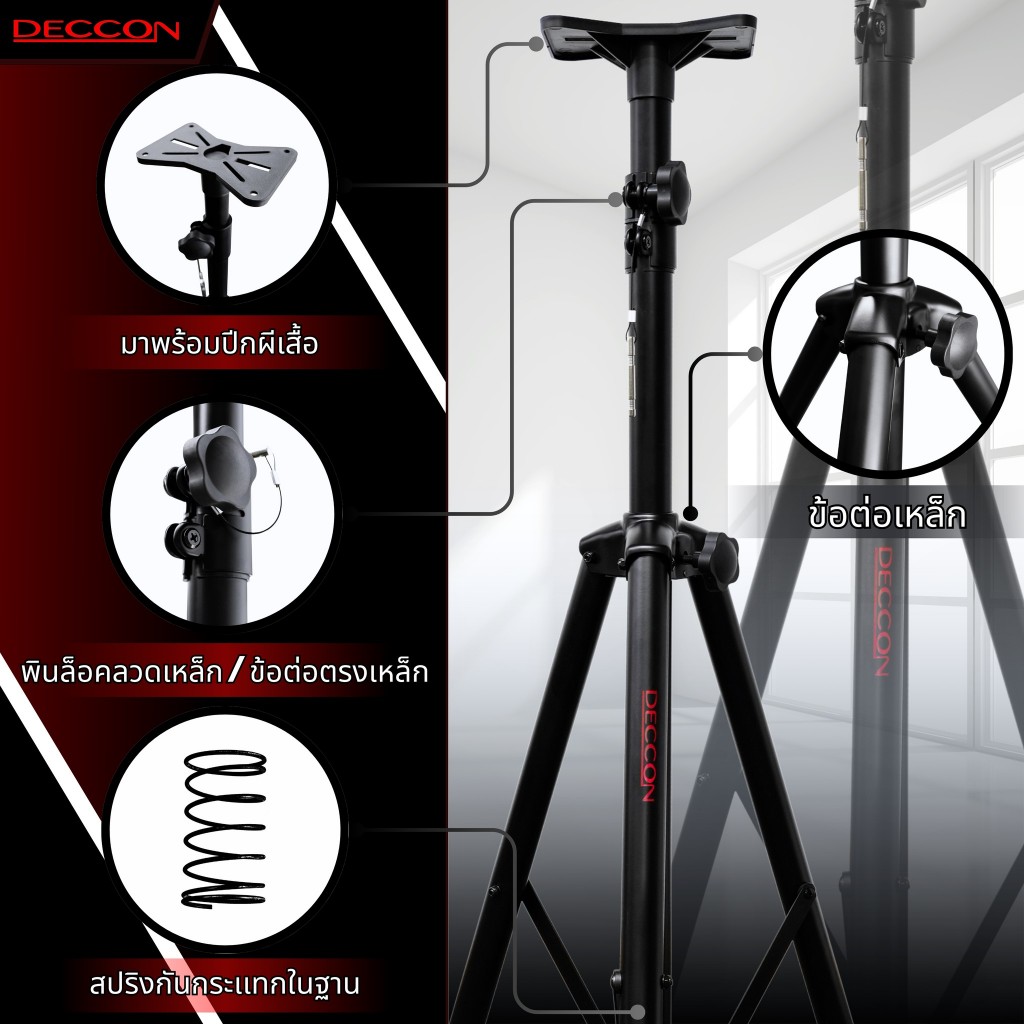 DECCON PS-500M ขาตั้งตู้ลำโพง เหล็ก เบ้าเหล็ก สูง 110-185 CM. แข็งแรง ข้อต่อเหล็ก ขาลำโพง EV ขาตั้งพื้น PS500M