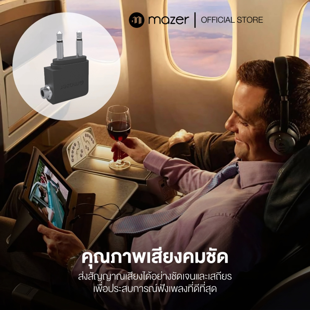MAZER อะแดปเตอร์เสียง 3.5 มม. Infinite Flymate Dual Inflight Audio adapter สำหรับใช้งานบนเครื่องบิน