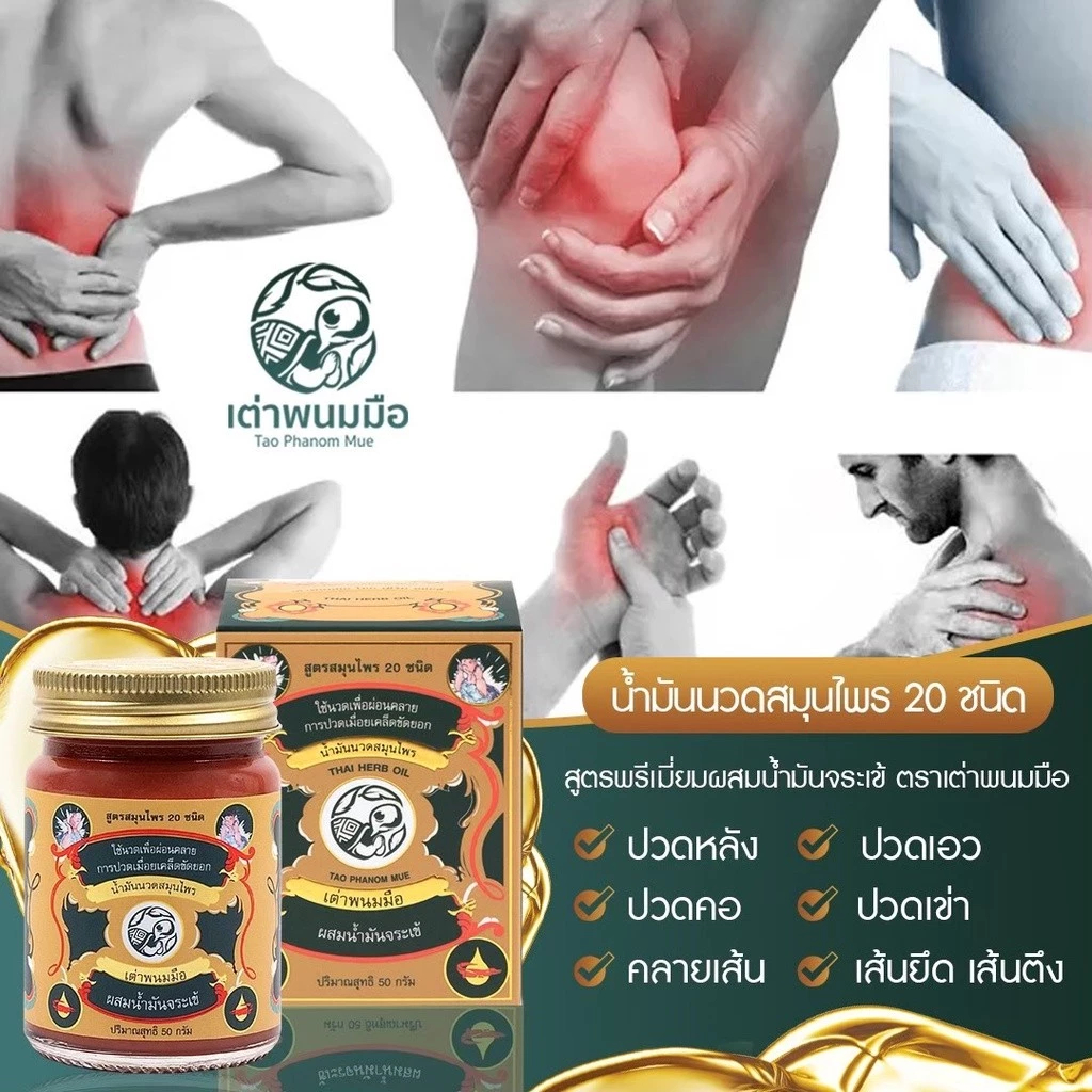 Taophanommue ของแท้ 100% น้ำมันนวด ยาหม่องสมุนไพร ตราเต่าพนมมือ ลดอาการปวด คลายเส้น ไม่แสบร้อน