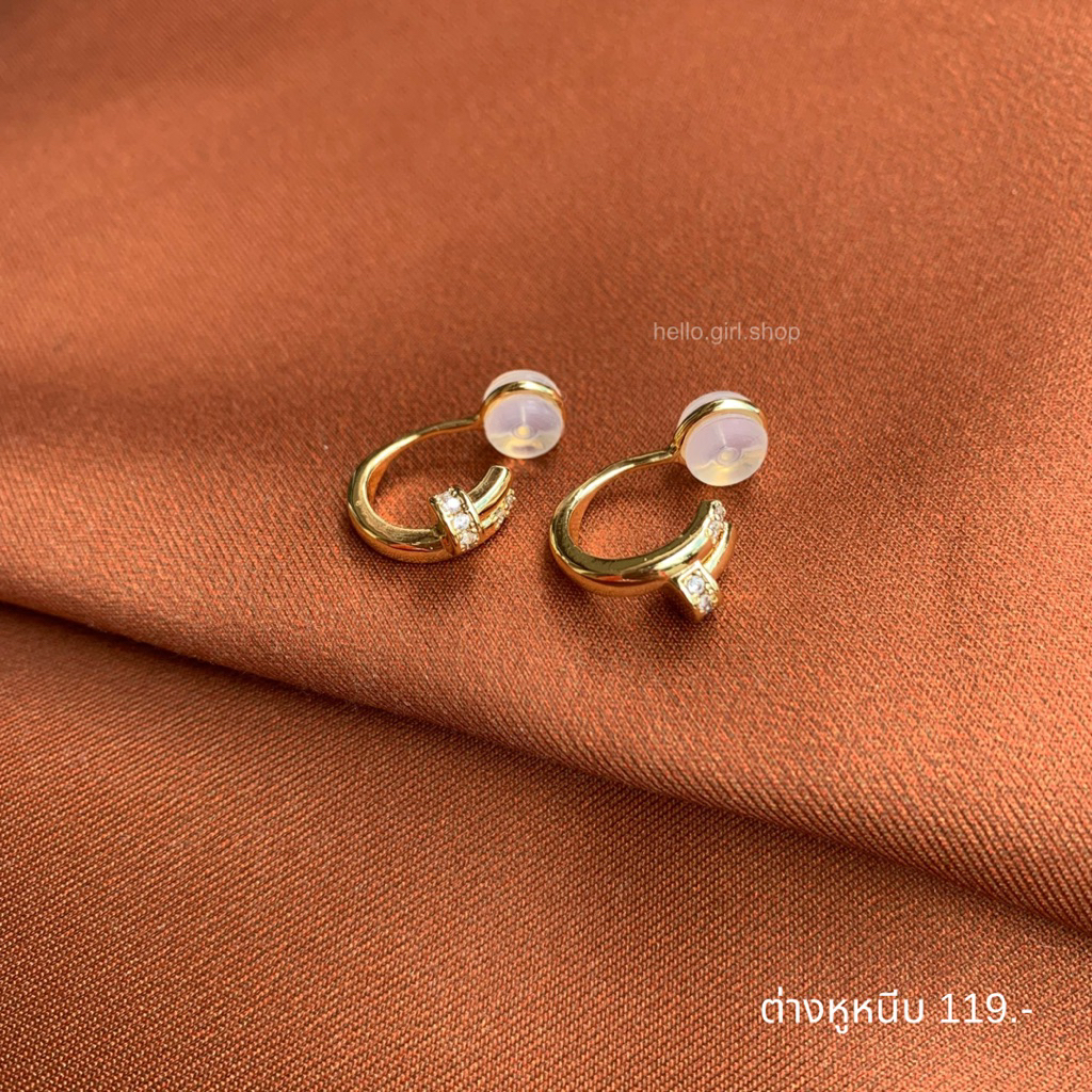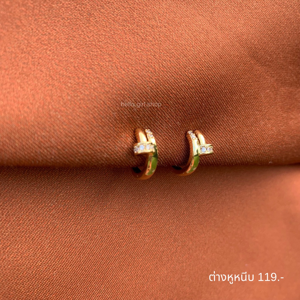 ( ต่างหูหนีบ ขดลวด ) ต่างหูห่วง สีทองลายตะปูเพชร