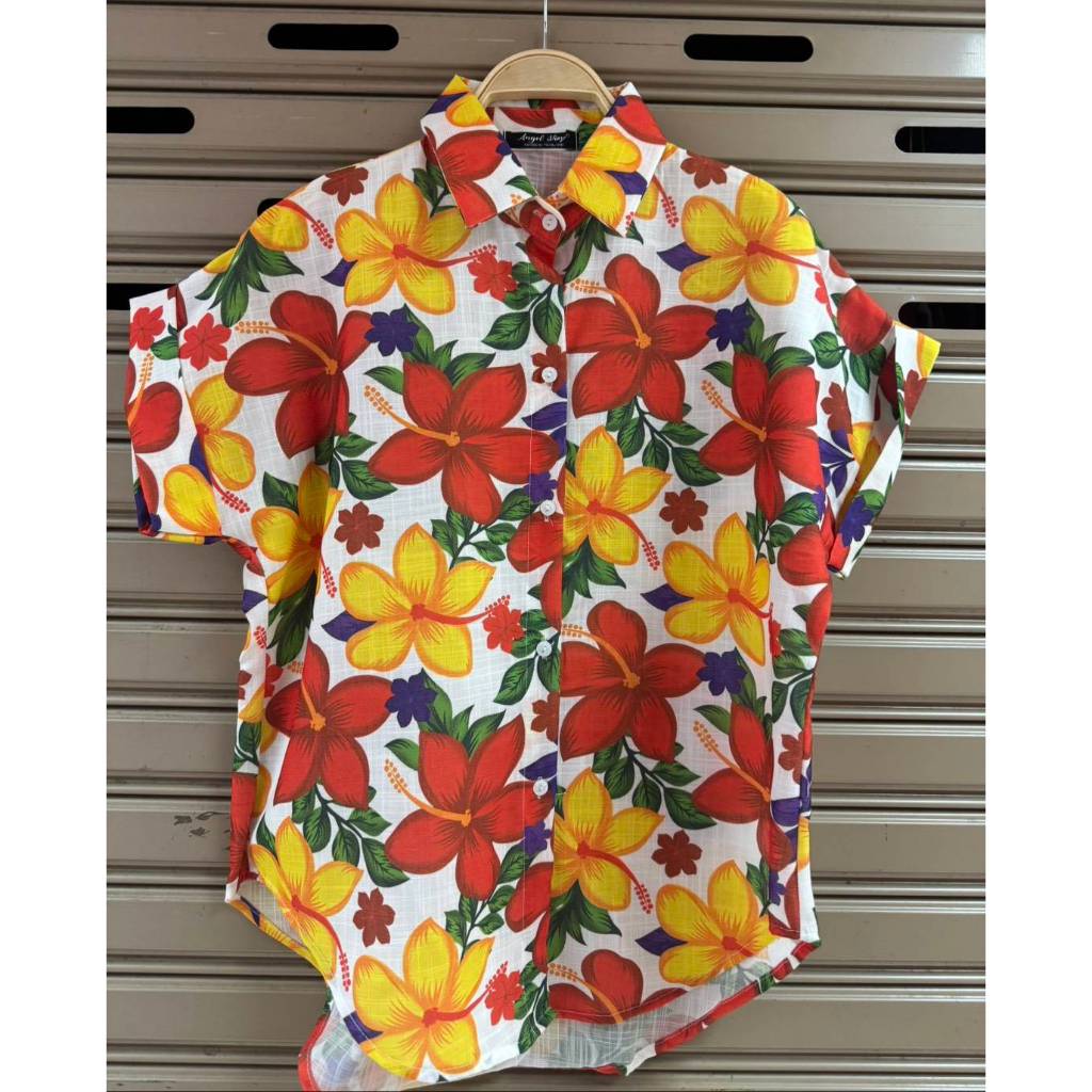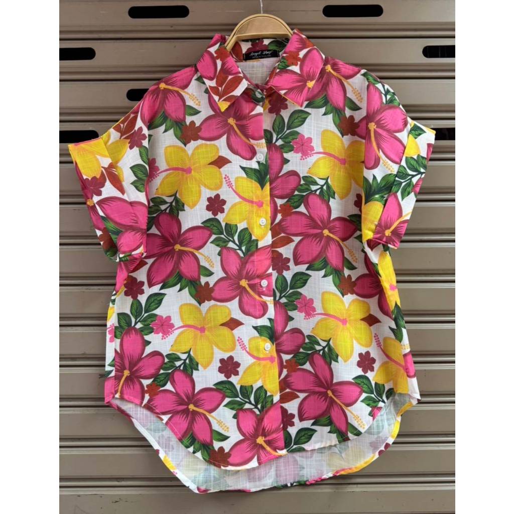 ป้าย Angle เสื้อผ้าฝ้ายพิมพ์ลายแขนเบิ้ล อก 44 นิ้ว ยาว 25 นิ้ว