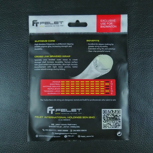 เอ็นแบดมินตัน Felet Ultramax Turbo Nano 66 Plus+ (0.66มม.) สินค้าลิขสิทธิ์แท้ 100%